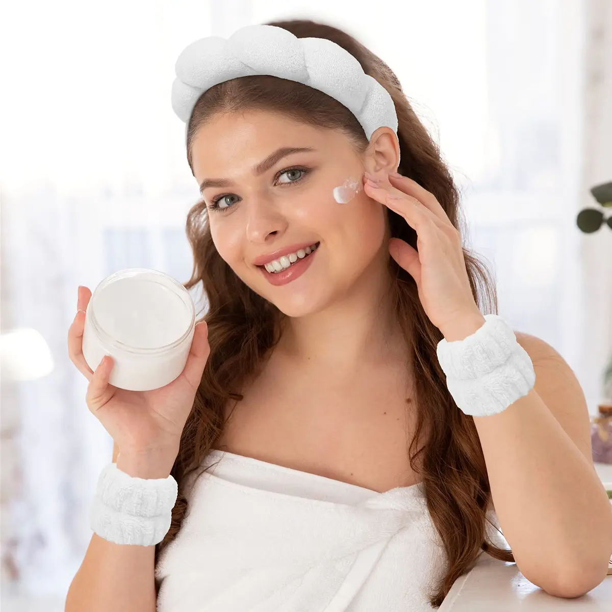 Face Wash Headband Wristband and Hair Scrunchie Usage Occasion - This spa sponge headband set is very versatile and applied to most daily occasions, such as face washing, makeup, spa, yoga, sports, etc. It is extremely soft, comfortable and cute, and can even create a lovely look when reading, watching TV and wearing it daily.
