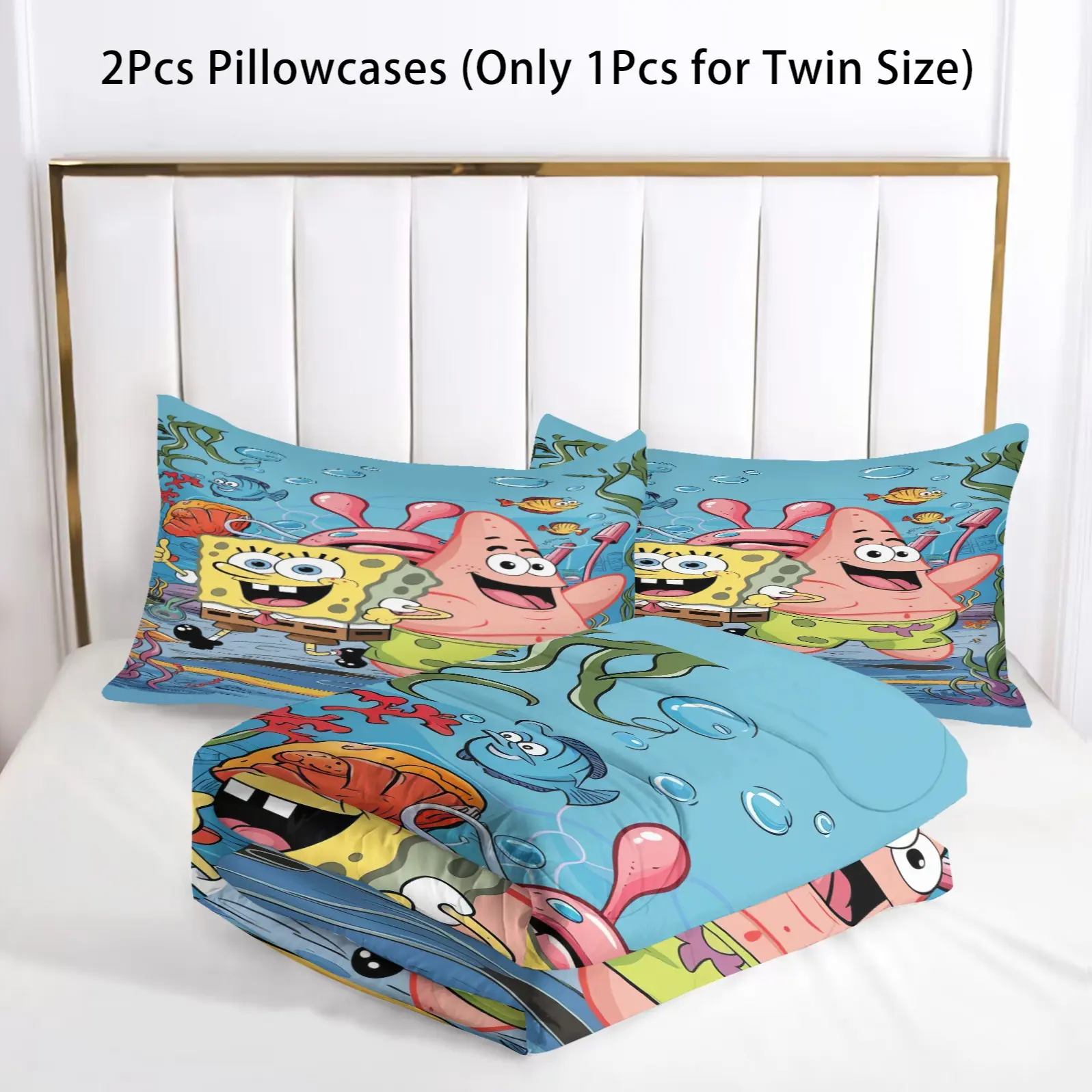 Spongebob Pattern Comforter Set, Soft And Durable Bedding Set, Includes 1 Comforter And 1 Or 2 Pillowcases, Daily Holiday Birthday Gift Bedroom Decor For Kids And Adults