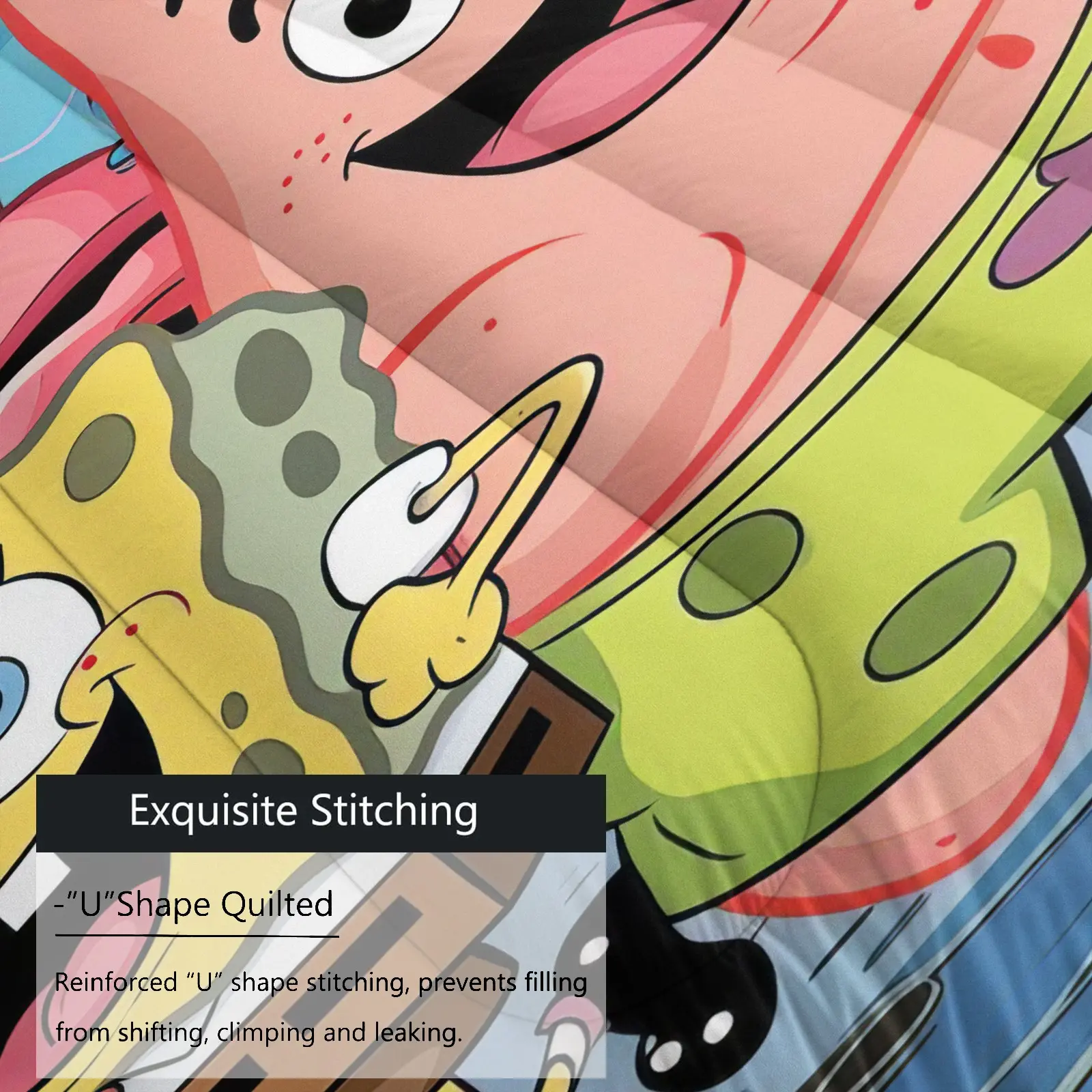 【Unique SpongeBob Art】: Featuring vibrant SpongeBob artwork, this bedding set adds fun flair to any bedroom decor.