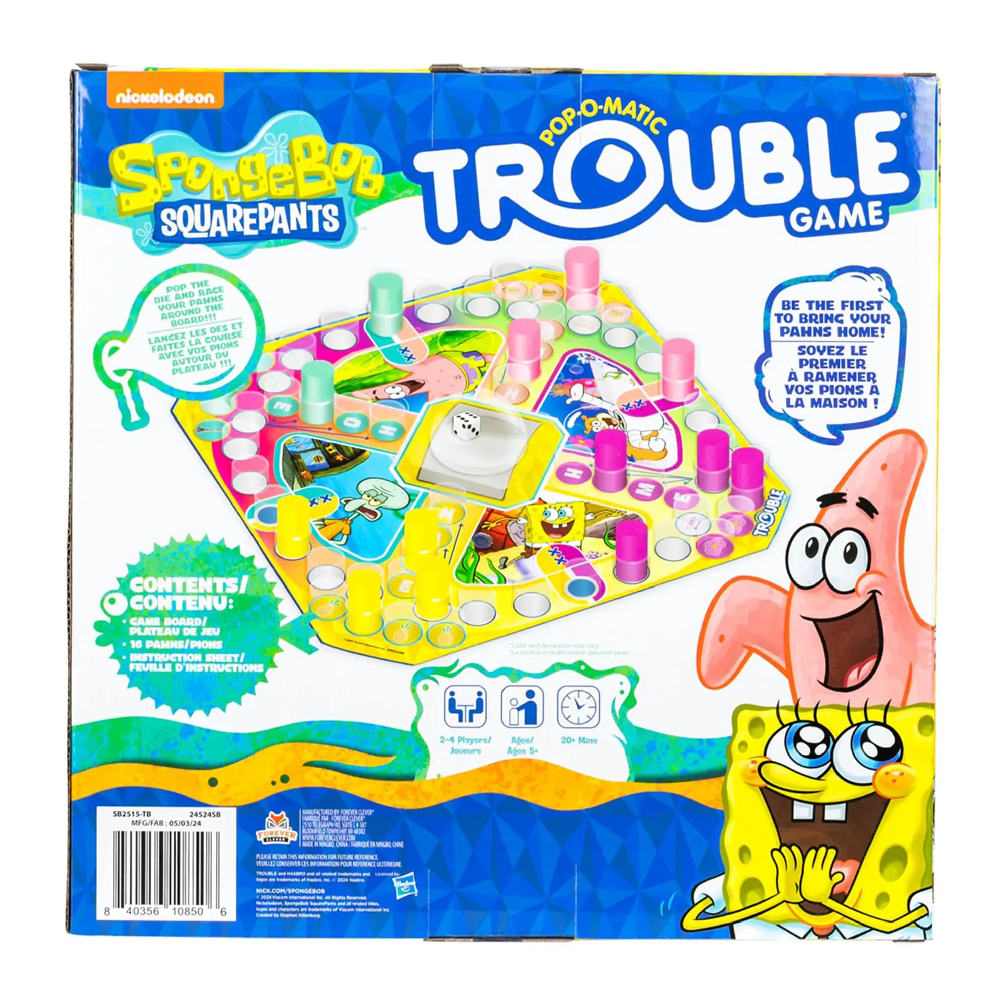 Are you ready for an underwater adventure that’s packed with laughter and excitement? Jump into the wacky world of SpongeBob SquarePants, where it's a race to the finish and a whole lot of giggles await! Get ready to spin the wheel of trouble as you navigate through Jellyfish Fields, Chum Bucket, and Krusty Krab! In this action-packed game, you’ll encounter all your favorite characters—like Patrick, Squidward, and of course, SpongeBob himself! But beware! Trouble lurks around every corner! Will you encounter a giant jellyfish or snag a Krabby Patty bonus? Each turn brings surprises, making every game unique and exciting! Makes an amazing gift for any SpongeBob fan! Don’t let your chance to join in the fun slip away! For 2-4 players. Approximately 20 minute game play.