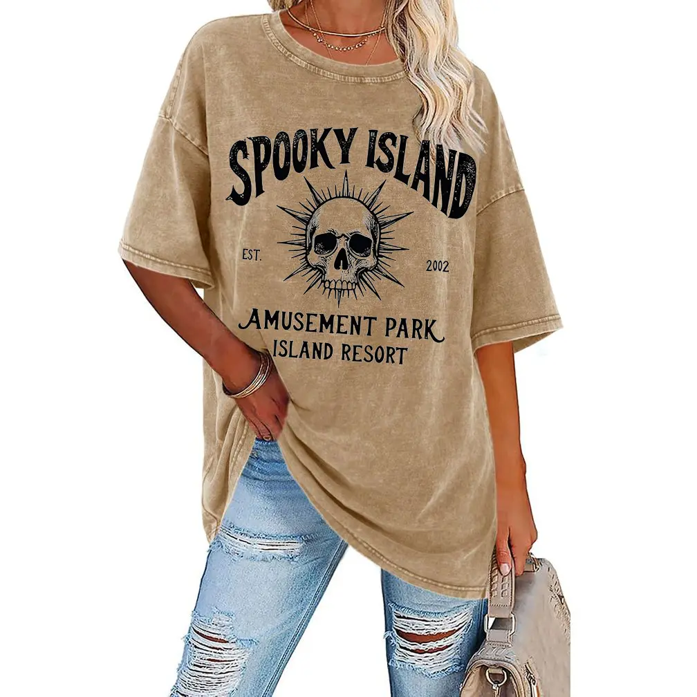 Vintage Spooky Island Graphic Tee 👻 100% Cotton | Soft & Breathable | Perfect for Everyday Wear & Easy Street Style Fit#womenswear #tiktokshop #fyp #spooky #spookyisland #tiktok