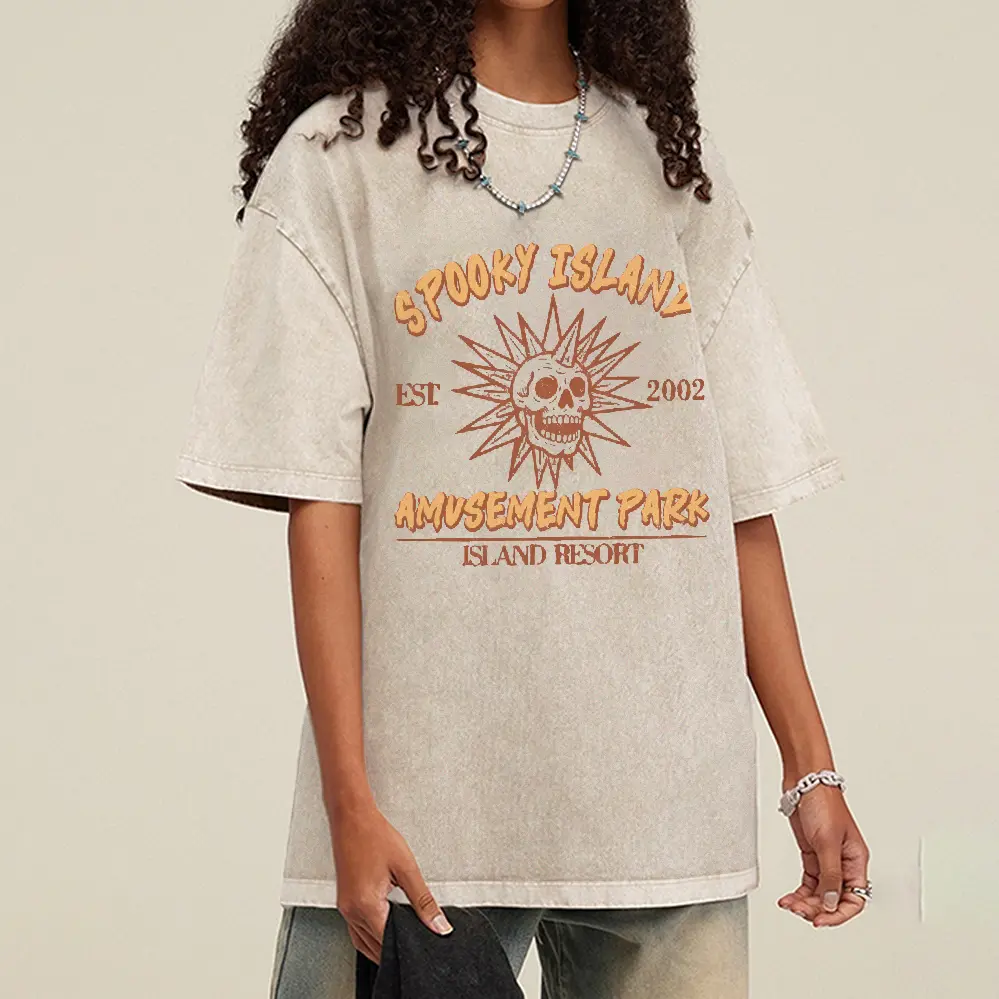 Spooky Island Washed T-Shirt Retro Cartoon Movie T-shirt Spooky Island Disco Skull 90s Vintage Summer Outfit Casual Classic 100% Soft Cotton Graphic Print Men's Top Long Sleeves shirts womenSpooky Island Washed T-Shirt Retro Cartoon Movie T-shirt Spooky Island Disco Skull 90s Vintage Summer Outfit Casual Classic 100% Soft Cotton Graphic Print Men's Top Long Sleeves shirts women