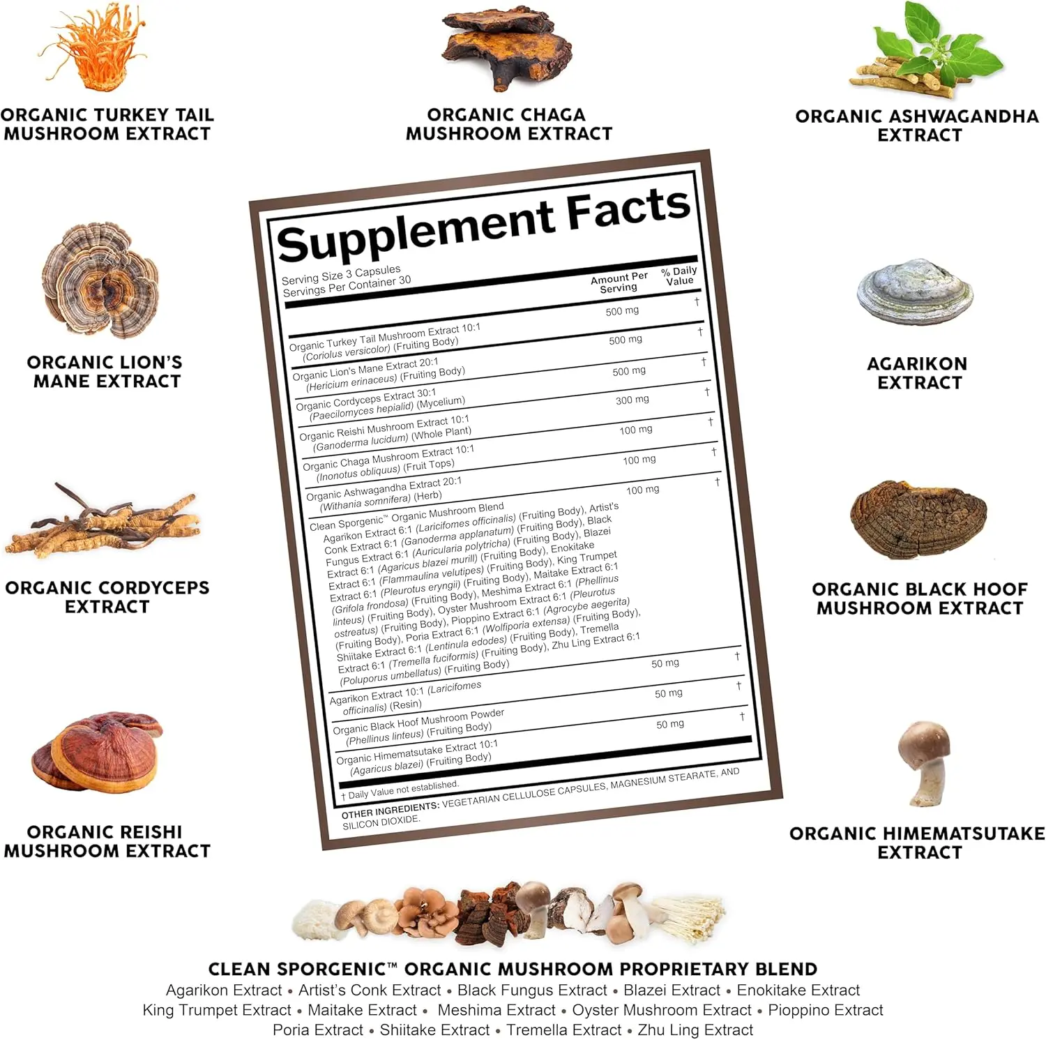 ·Immune Support: Reishi and turkey tail strengthen defenses.