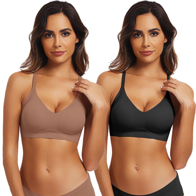 ·【Seamless Bra】Full cup wirefree bras give enough coverage ,the deep V-neck design to better accentuate your bust line and low back design shows your charming curve. This bralette for women is lightweight and non see-through, it hugs your chest perfectly, solving any awkward clothing situations.