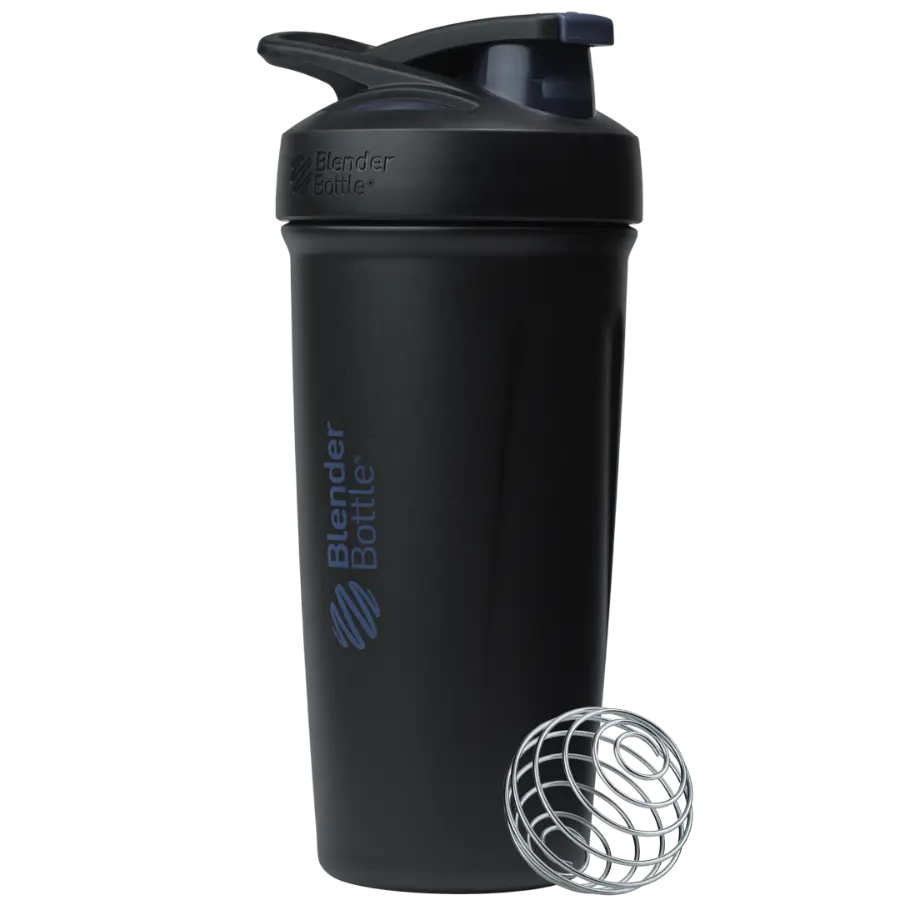 28-oz. insulated protein shaker bottle with easy open, easy close push-button cap
