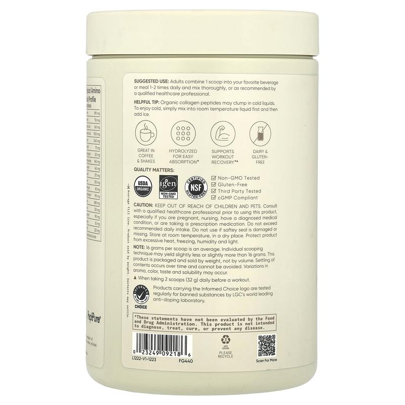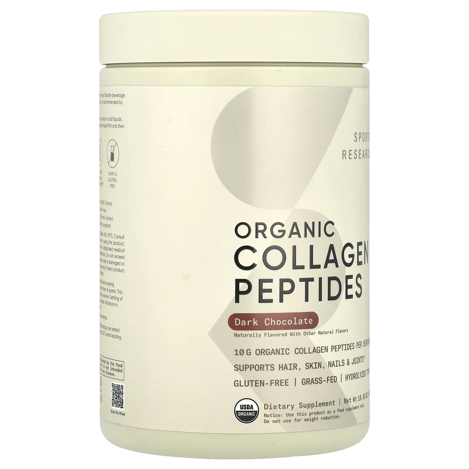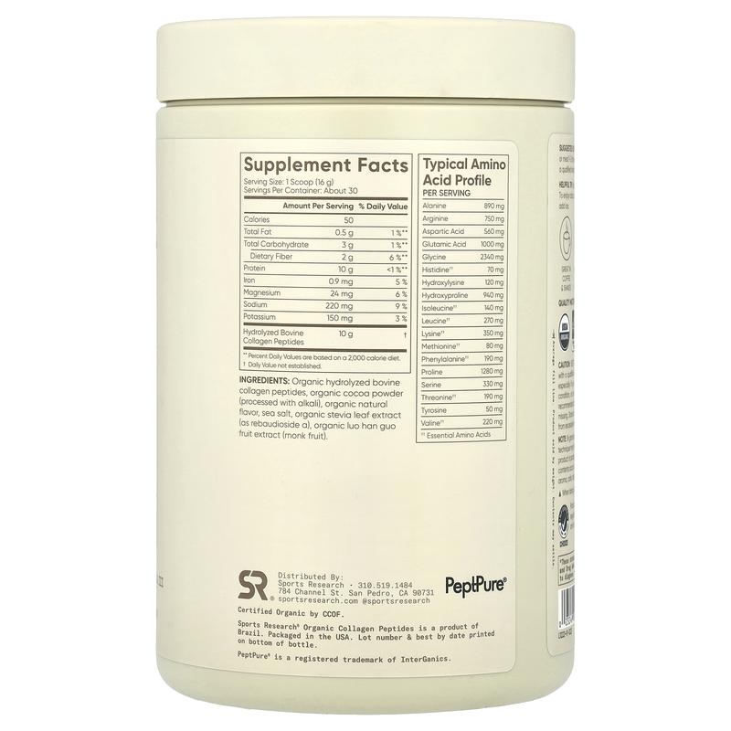 Sports Research Organic Collagen Peptides, Dark Chocolate, 16.93 oz (480 g)