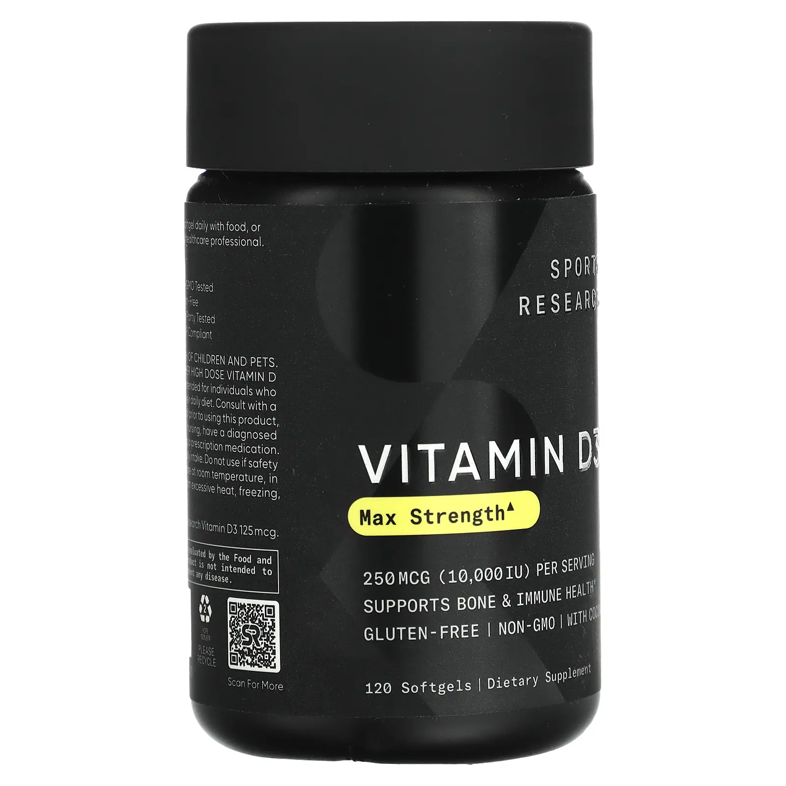 Sports Research Vitamin D3, Max Strength, 250 mcg (10,000 IU), 120 Softgels
