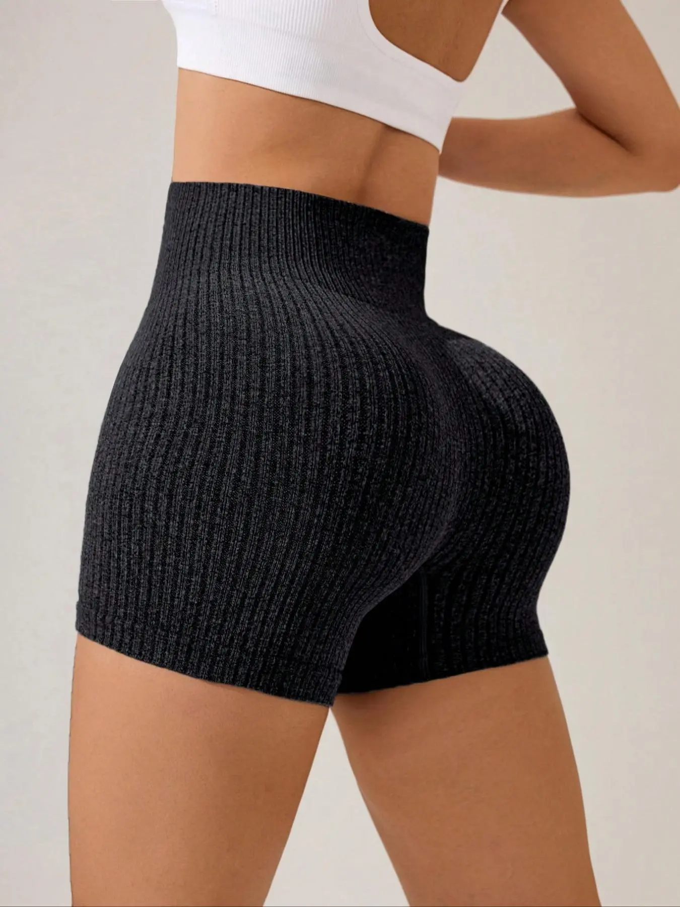 Women's Solid Ribbed Sports Shorts, High Stretch Shorts, High Waist Tummy Control Butt Lift Training Shorts, Ladies Sportswear for Indoor Outdoor Wear