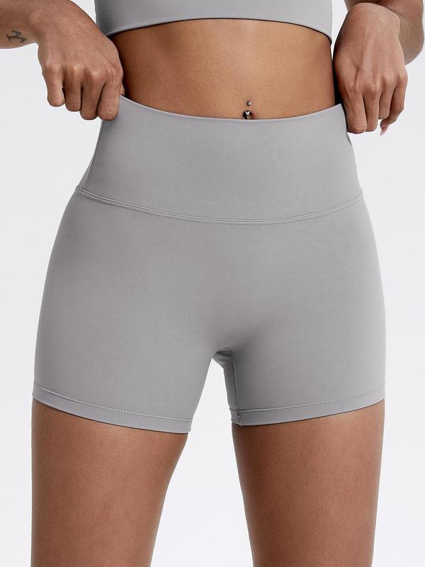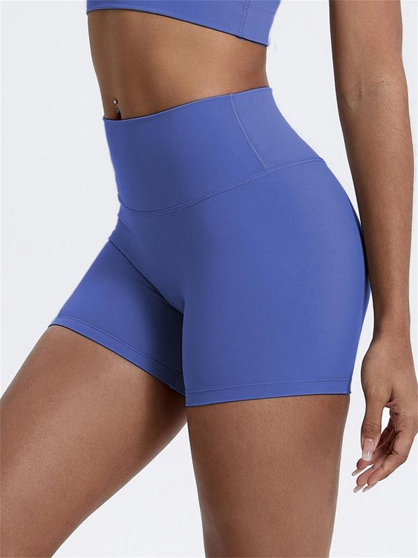 Women's Solid High Waist Sports Shorts, Gym Shorts, Running Workout Shorts, High Stretch Yoga Bottoms, Ladies Sportswear for Indoor Outdoor Wear
