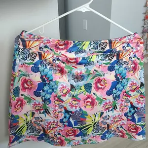 Love the colorful flower print, soft fabric, great fit, shorts feel invisible, light weight, comfortable band on waist is wide. LG 5'3" 165lb