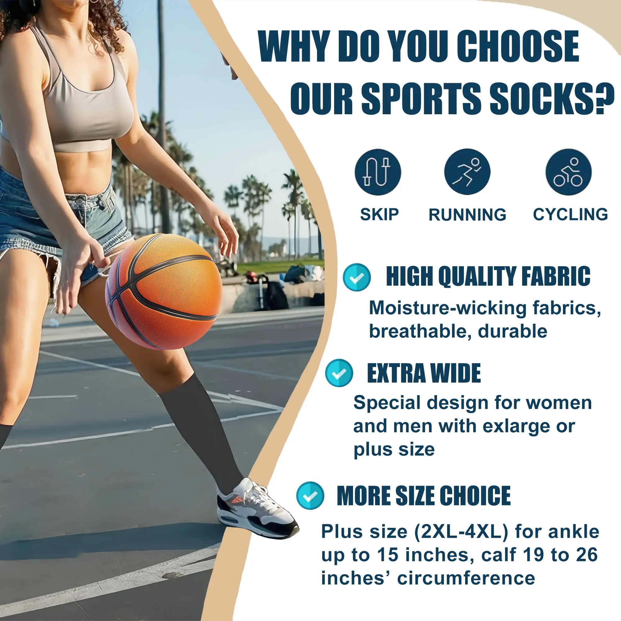 ·Extra large wide calf size, premium elasticity fabric built for durability. Special design for women and men with exlarge or plus size.
