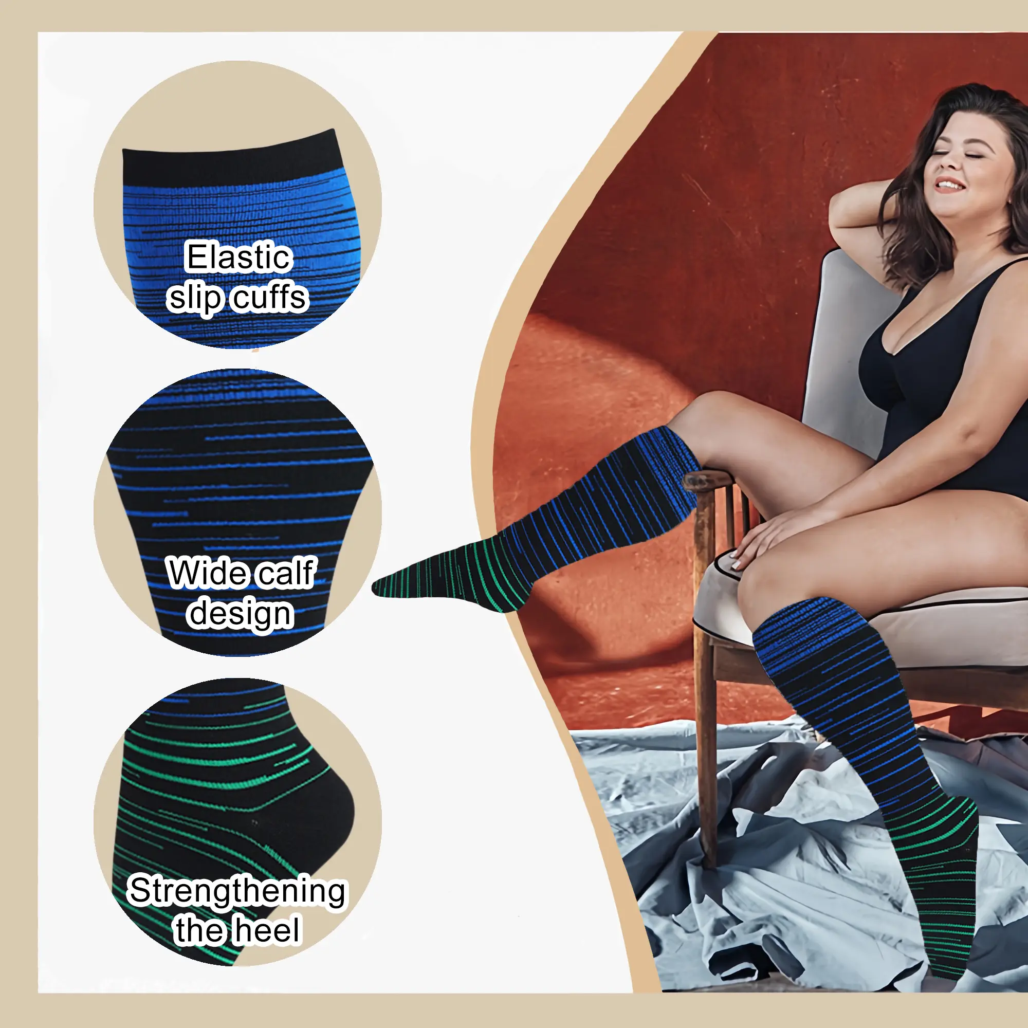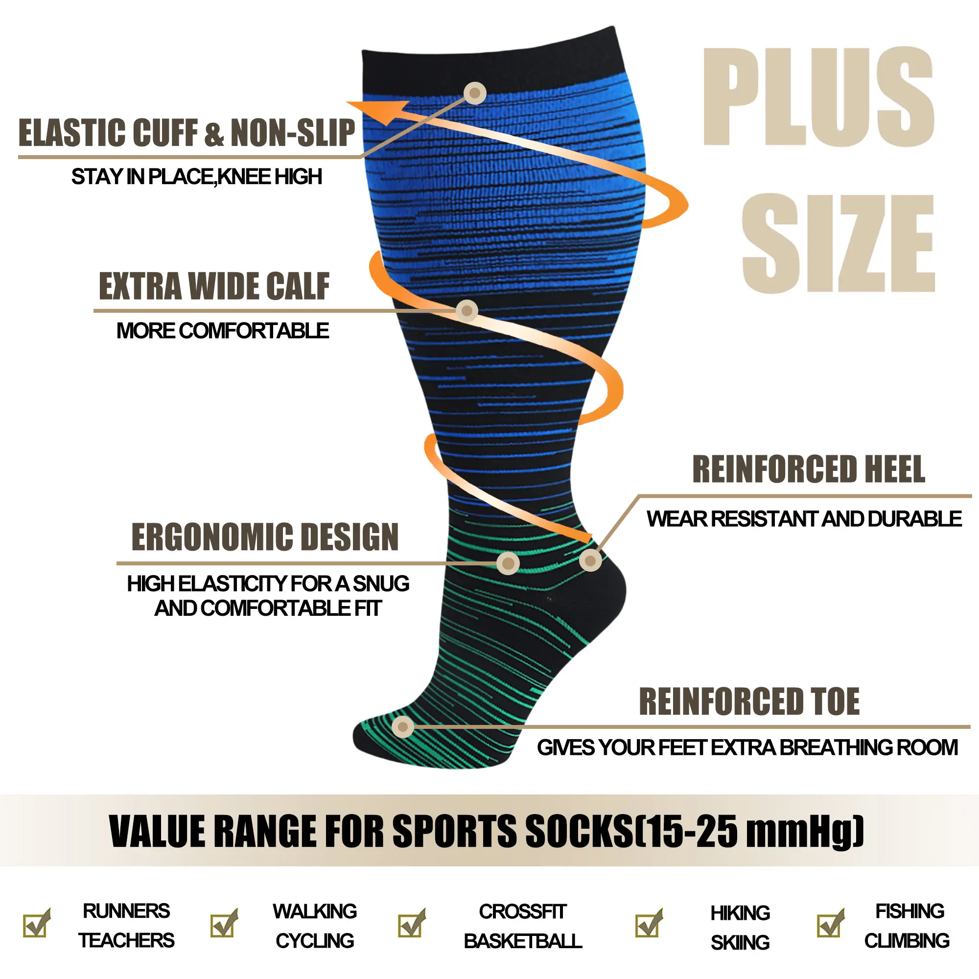 ·Extra large wide calf size, premium elasticity fabric built for durability. Special design for women and men with exlarge or plus size.