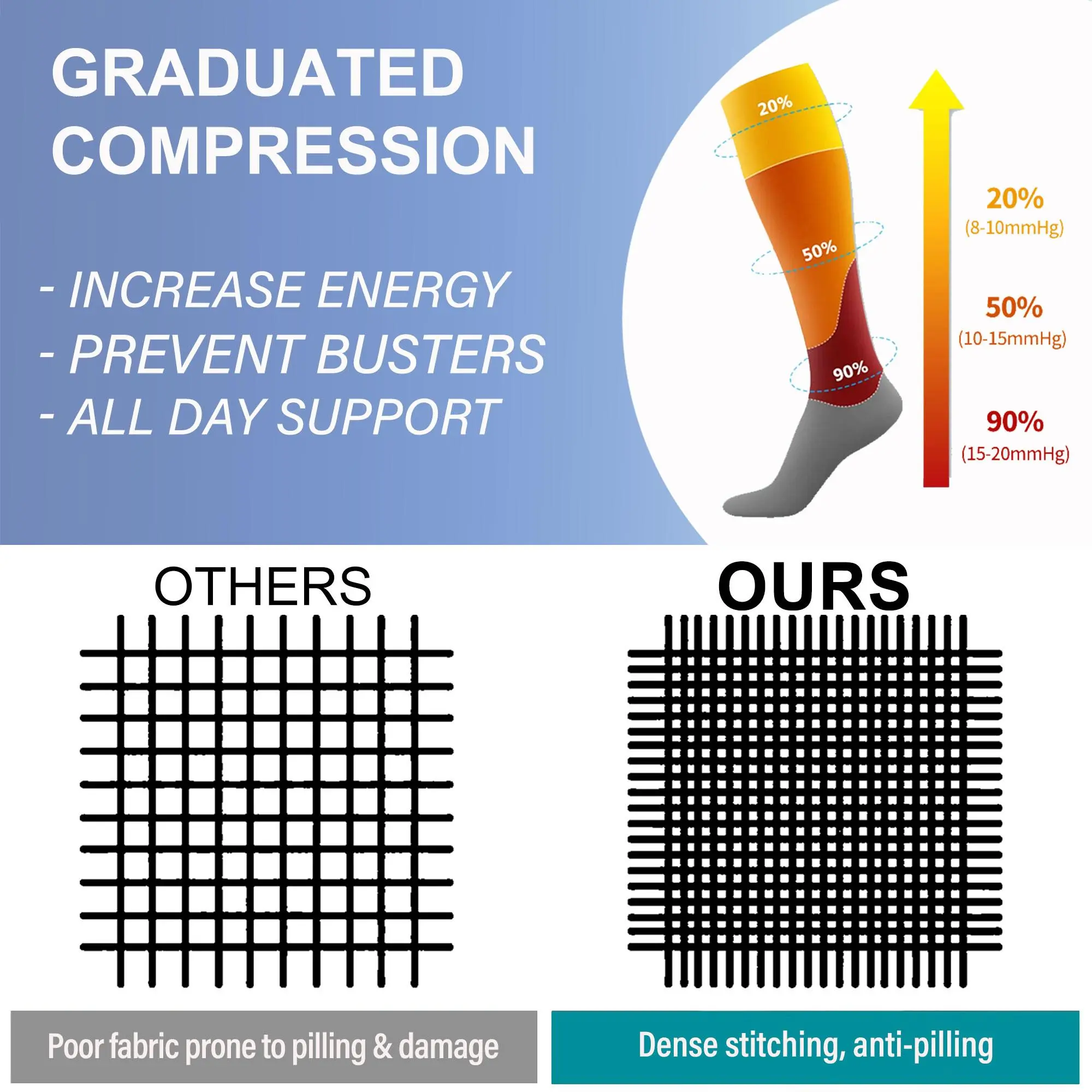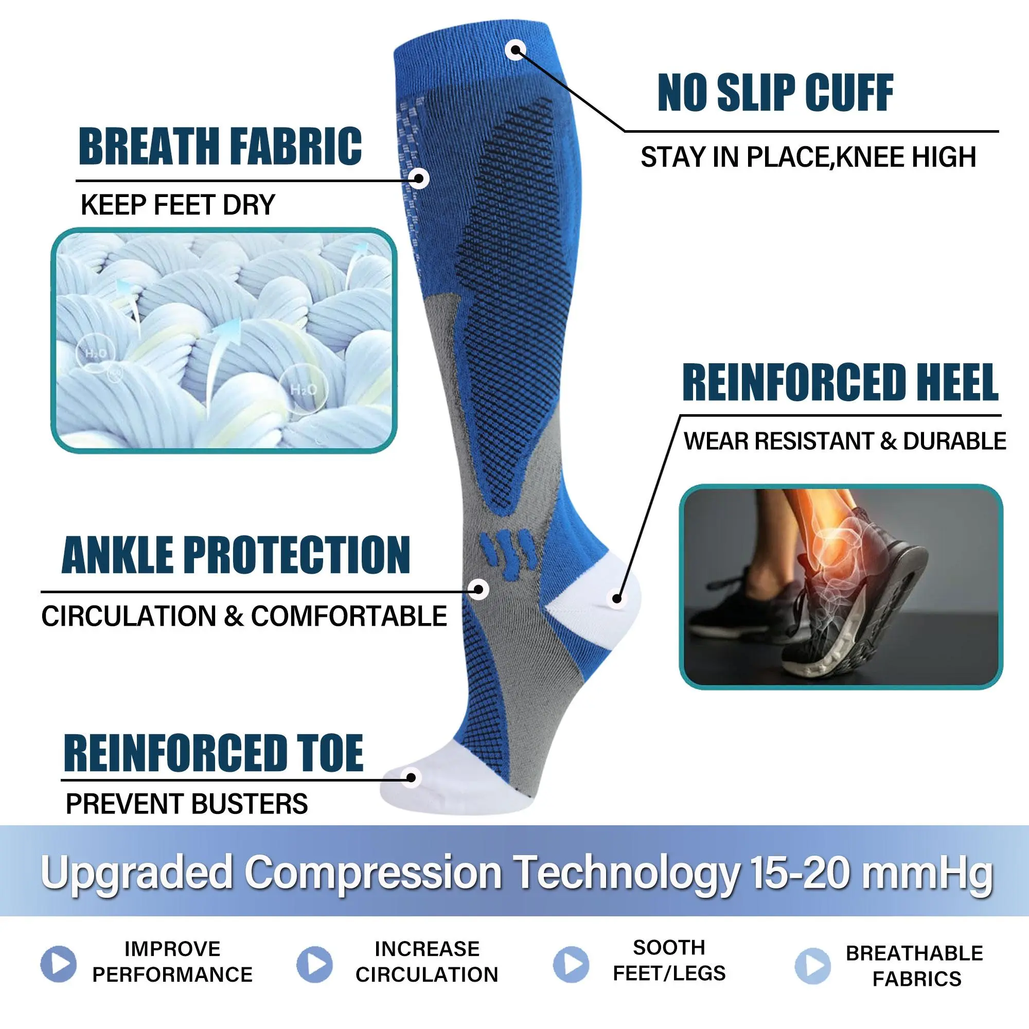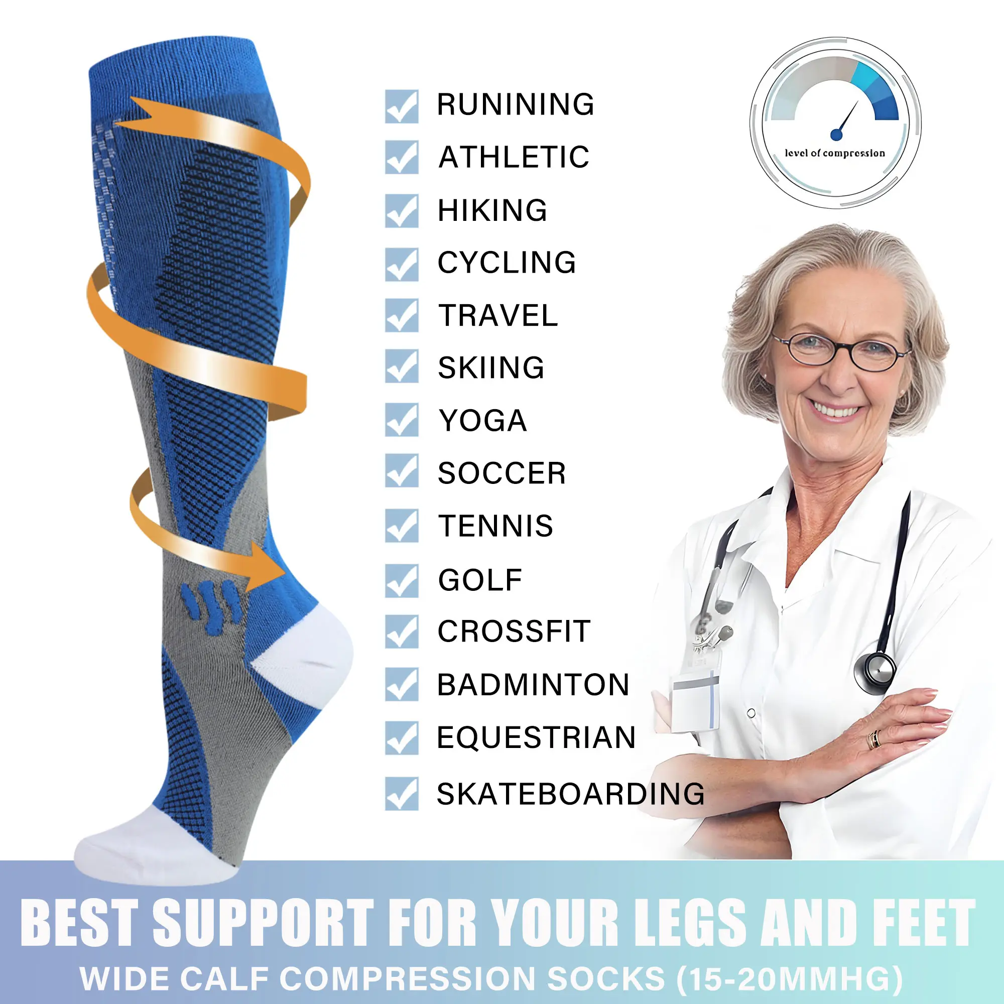 😍 I absolutely love these compression socks! The vibrant colors are stunning, and the soft, high-quality material feels amazing. They're incredibly comfortable on my calves and provide just the right amount of support and energy to keep me going all day. Highly recommended!