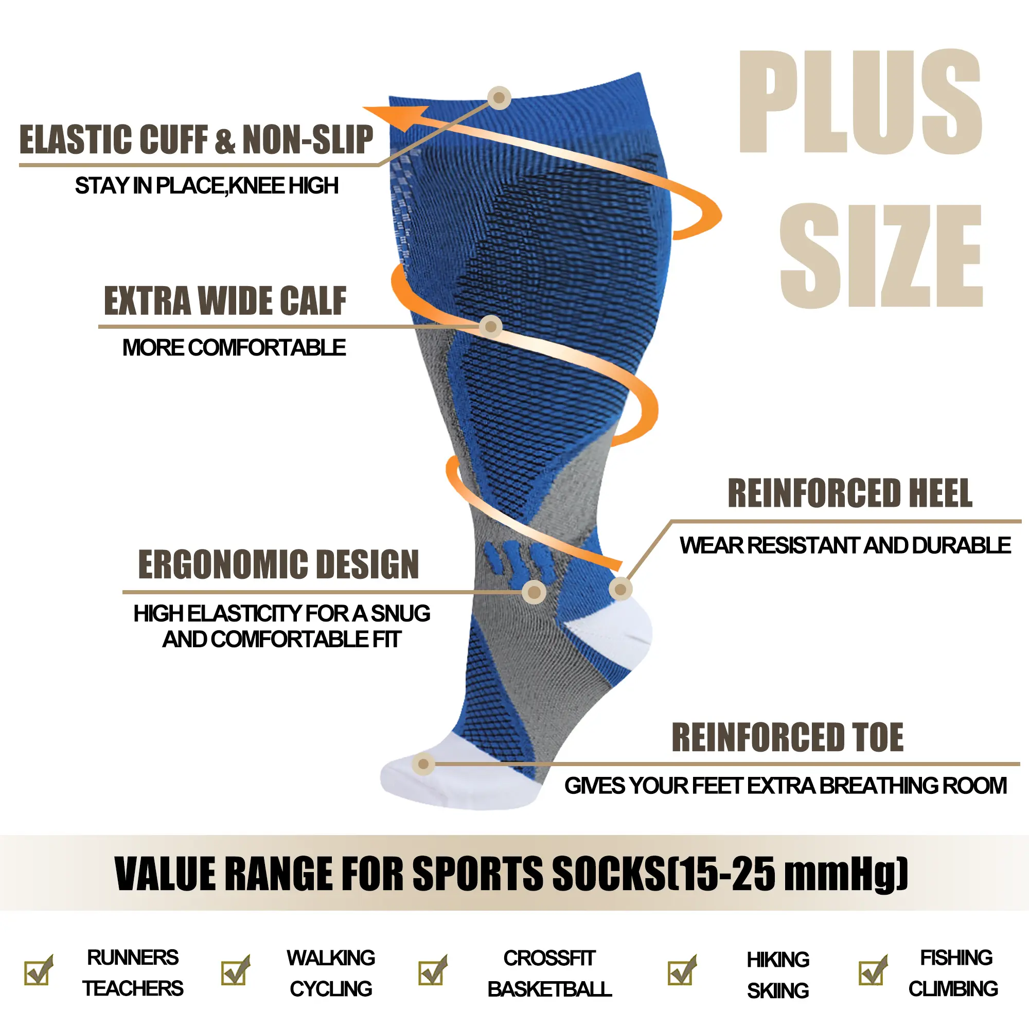 ·Extra large wide calf size, premium elasticity fabric built for durability. Special design for women and men with exlarge or plus size.