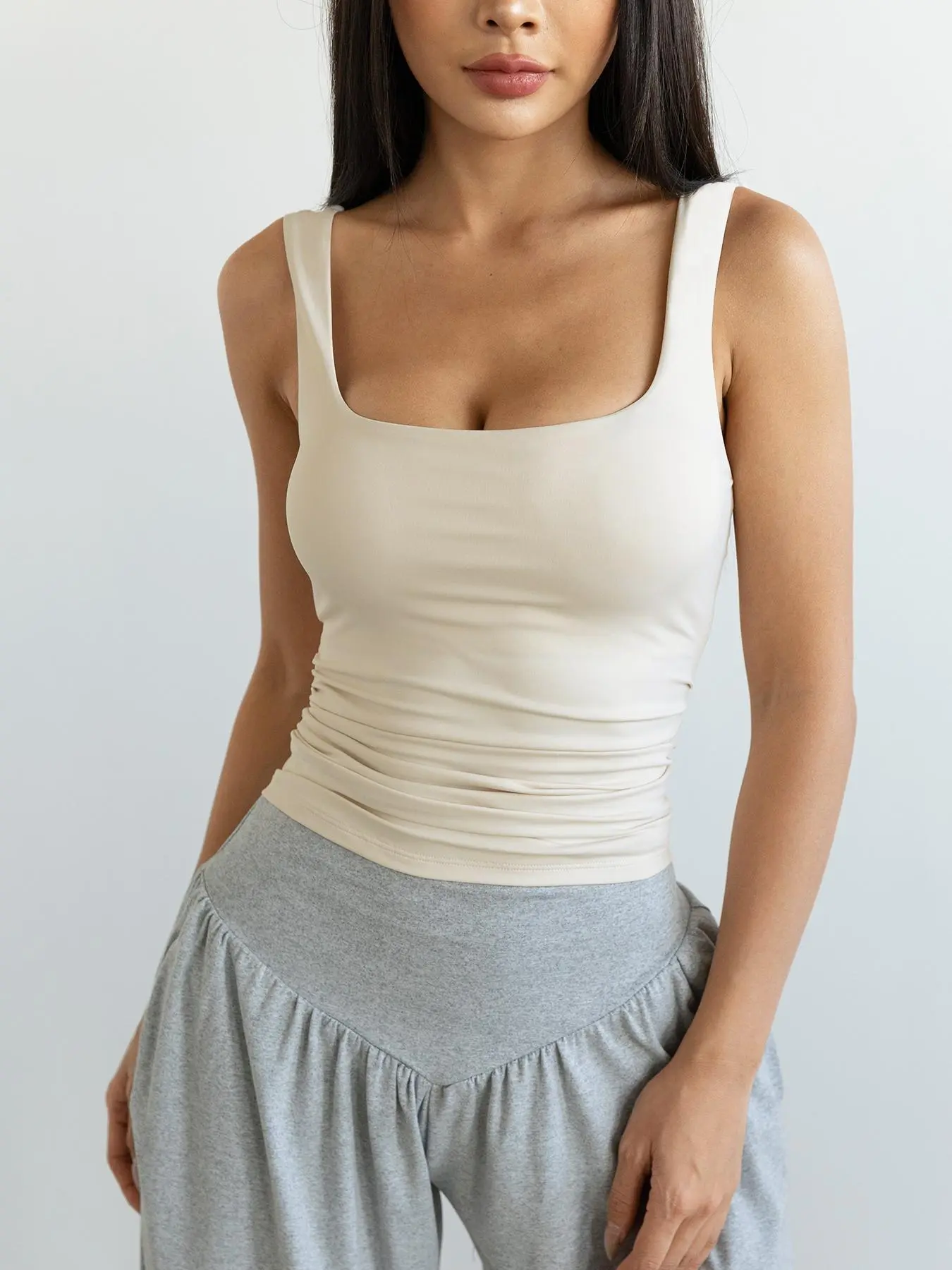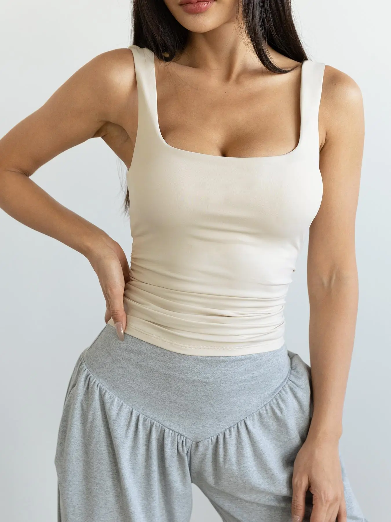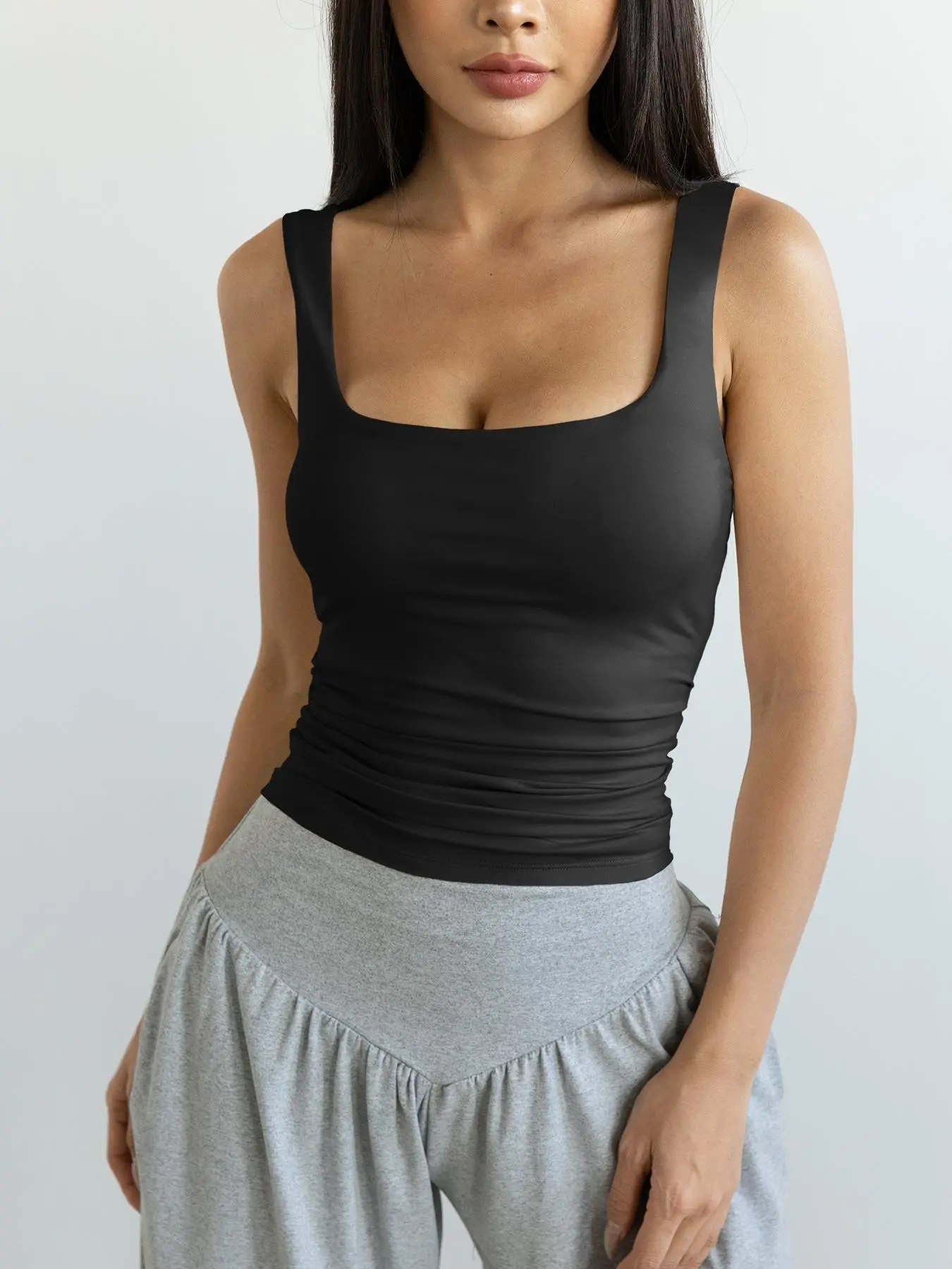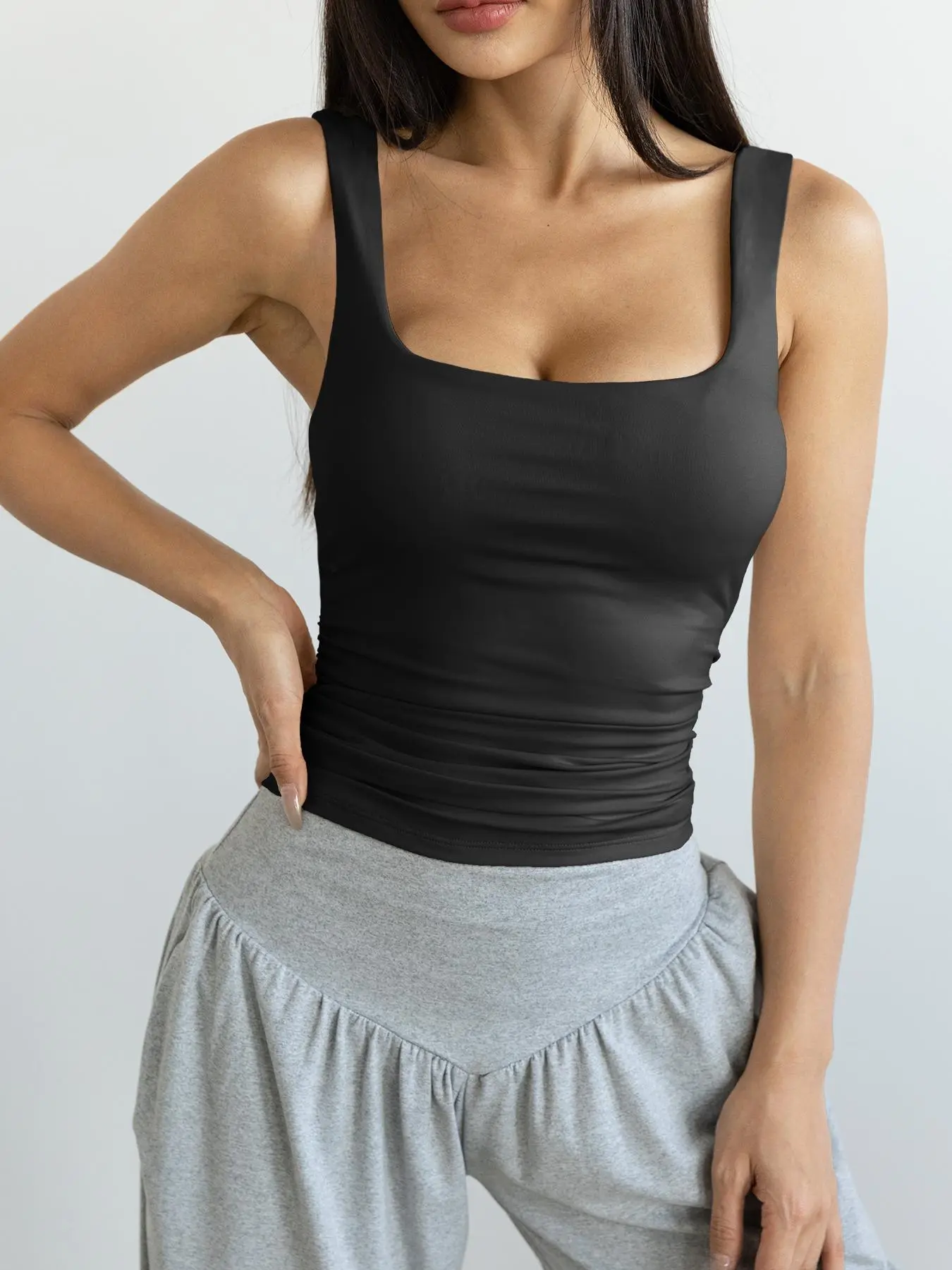 The go-to top for every fit!!love it🥰#tanktop #backless #comfortable #vest #croptop #breathable #solid #halterneck #ruched #womensfashion #sportswear #gymtok #gymwear #workoutoutfit #yogaoutfit #gymgirl #tiktokshoploveatfirstfind #spotlightfinds #tummycontrol