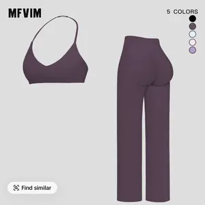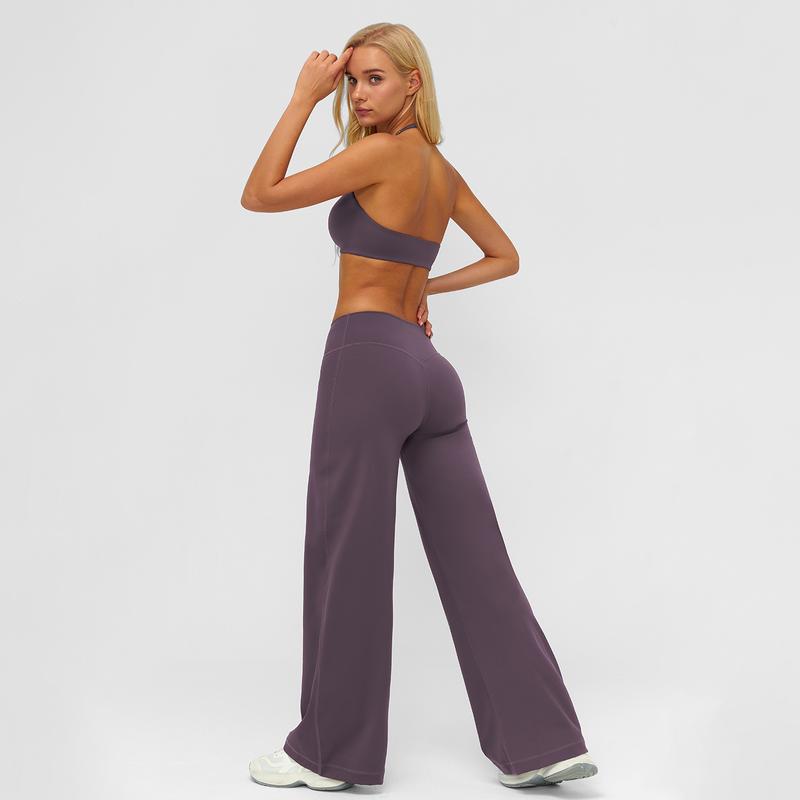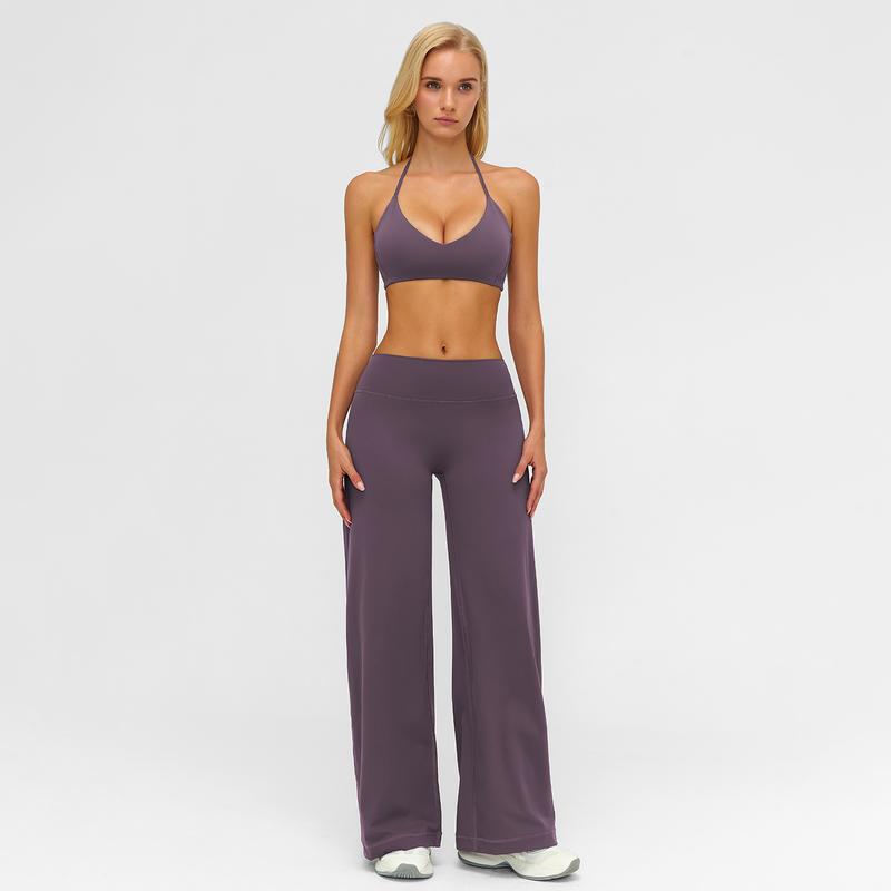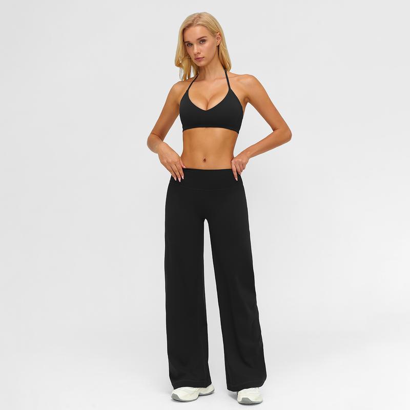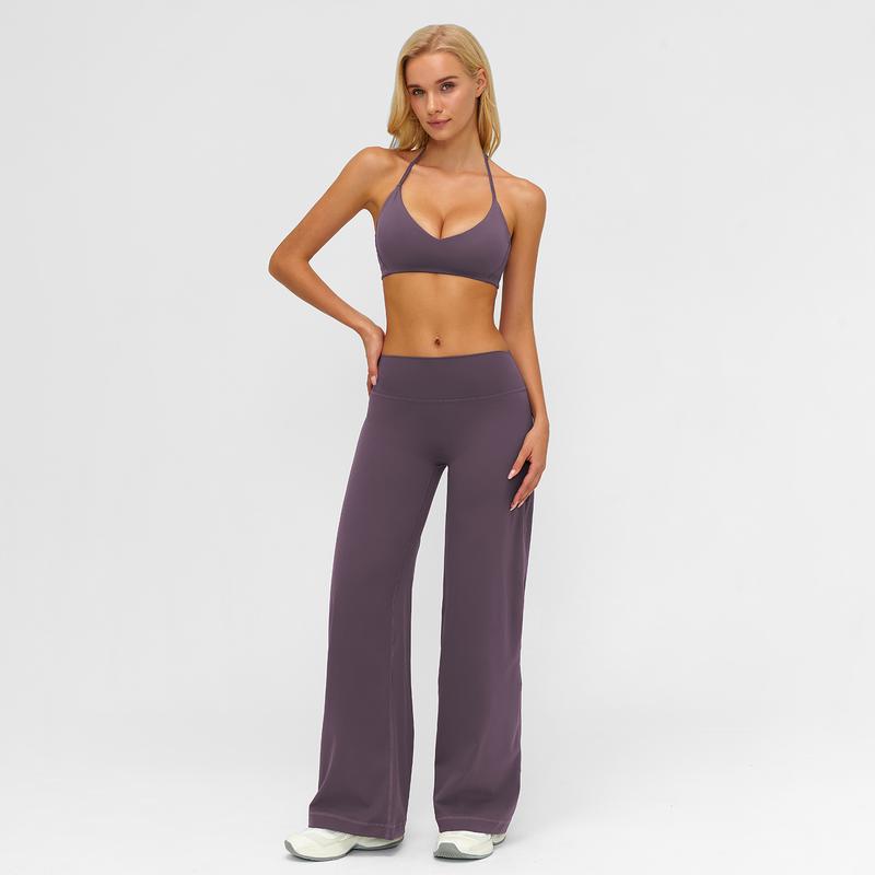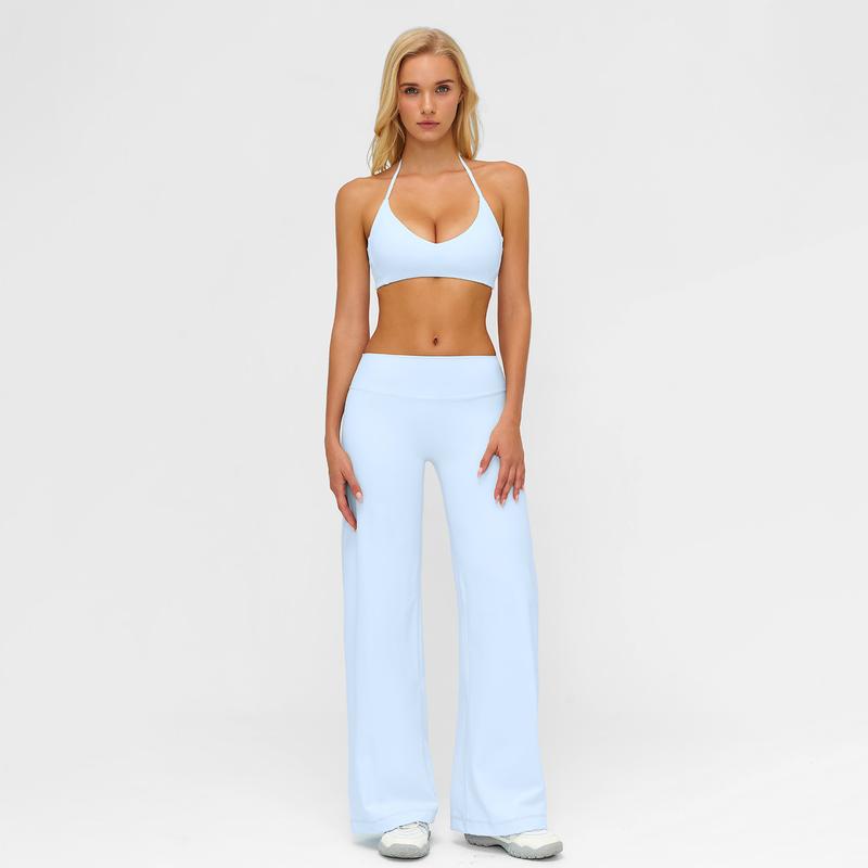 MFVIM Sporty Two-Piece Set Women's Plain Crop Cami Top & Flare Leg Pants Sports Set 78% Nylon 22% Spandex Comfy Breathable for Yoga Gym Workout Running