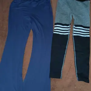 My blue pants on the left are adult women size small and the butt lifting leggings are also (supposed to be) a size small in women's but they're TOO small!