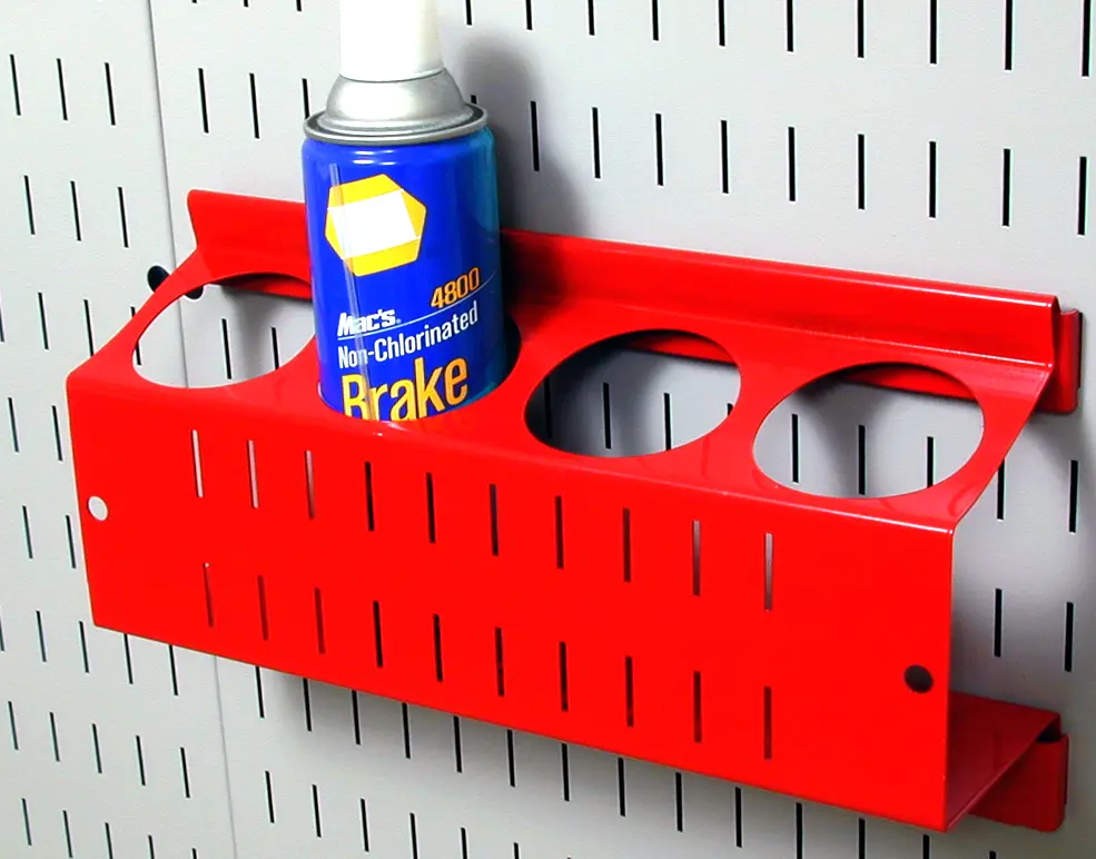 The Wall Control Slotted Metal Pegboard Spray Can Holder and Aerosol Can Organizer feature a scratch and rust resistant baked-on finish. These more secure and stable toolboard accessories are for use with the slots found in Wall Control Metal Pegboard tool board panels only. Although Wall Control Metal Pegboard Panels will accept conventional 1/4in pegboard accessories as well as Wall Control Slotted Accessories the Slotted Secure Tool Board Spray Pain Can Organizer included here is only for use with Wall Control Metal Pegboard Panels and Tool Boards. Wall Control Pegboard Products are Made in the USA