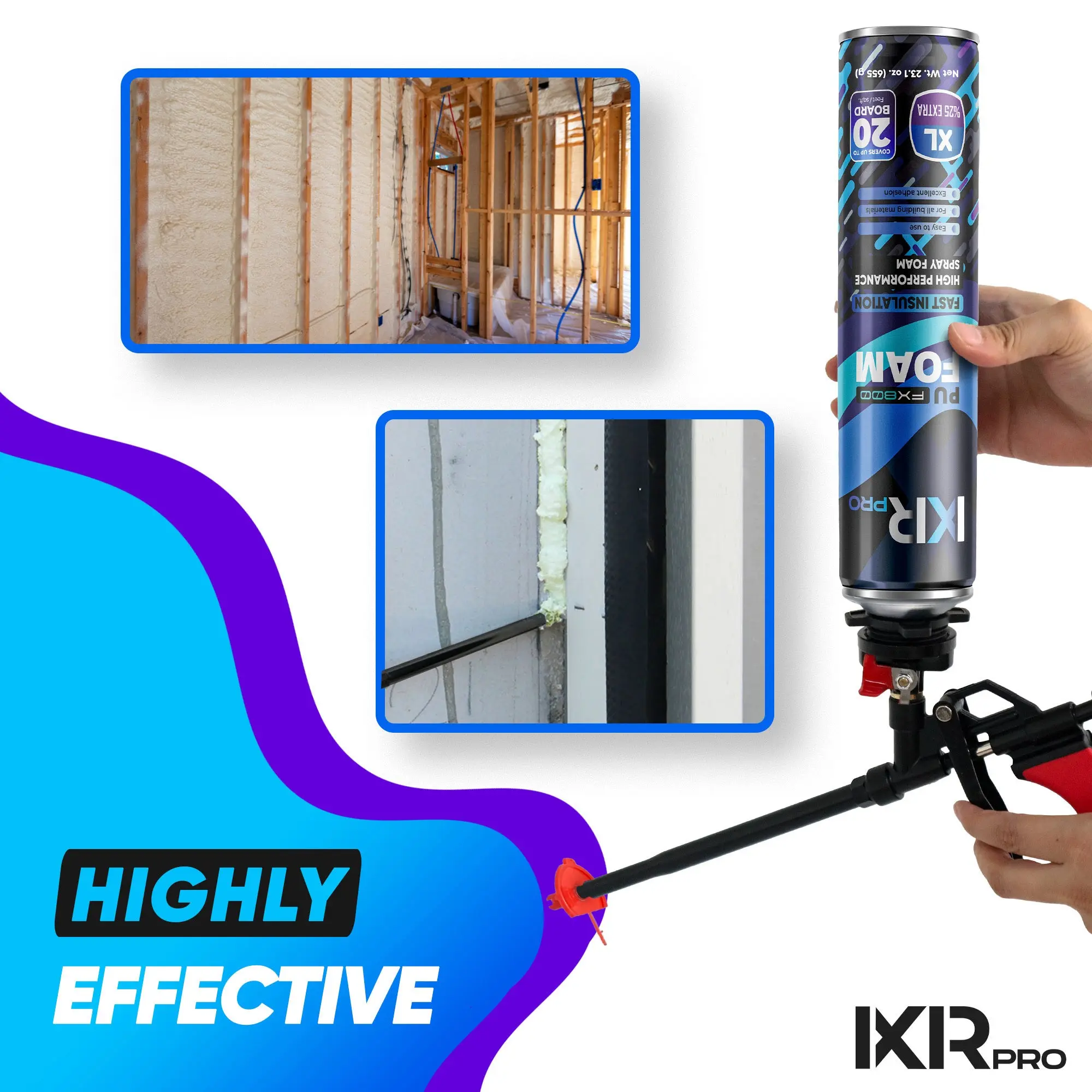Application Made Easy: Using our Spray Foam Insulation is a breeze! Just shake the can well before use to ensure proper mixing. Apply the foam with the Ixirpro Spray Foam Gun to the desired area. Allow 24 hours for the foam to cure fully before cutting or shaping as needed. Any excess foam can be removed with a solvent or cleaner before it cures. Each Spray Foam Insulation Can covers an impressive 20 board feet!