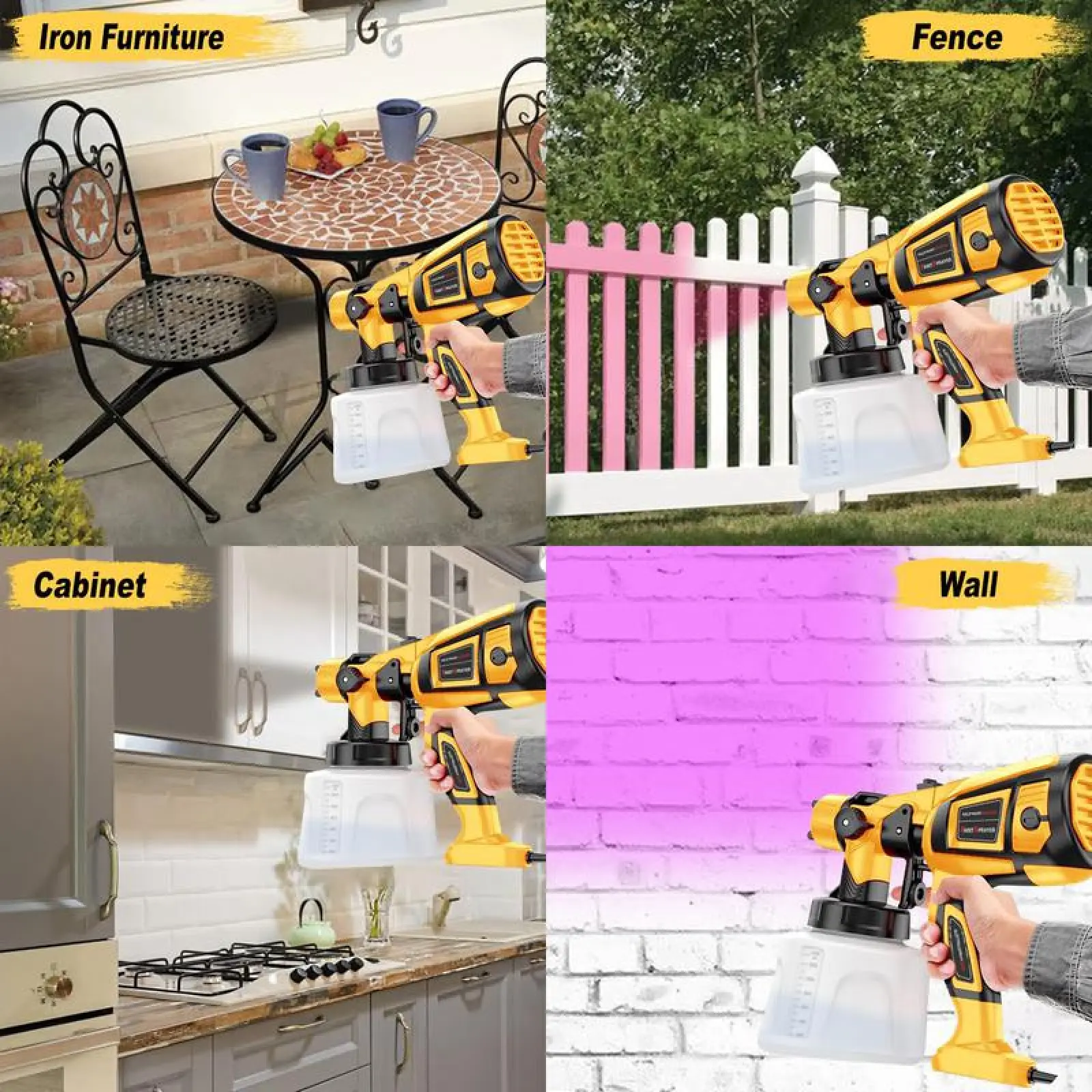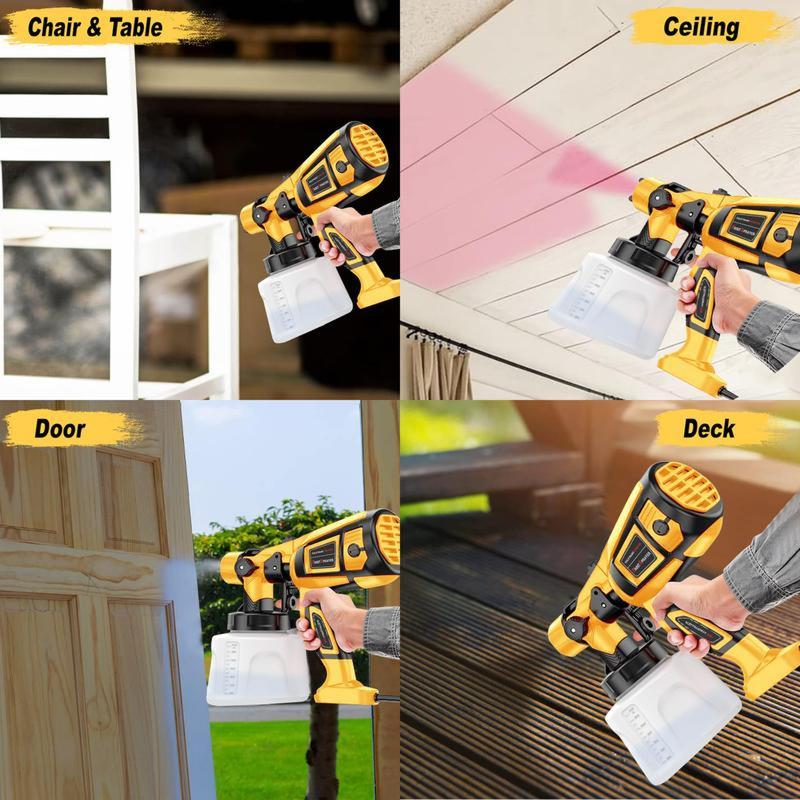 Paint sprayer tool:Advanced technology & careful design:The Paint Sprayer,operating at 1000 W with a large capacity container,boosts painting efficiency;Its adjustable flow control suits different tasks,offering a faster,more convenient alternative to rollers and brushes