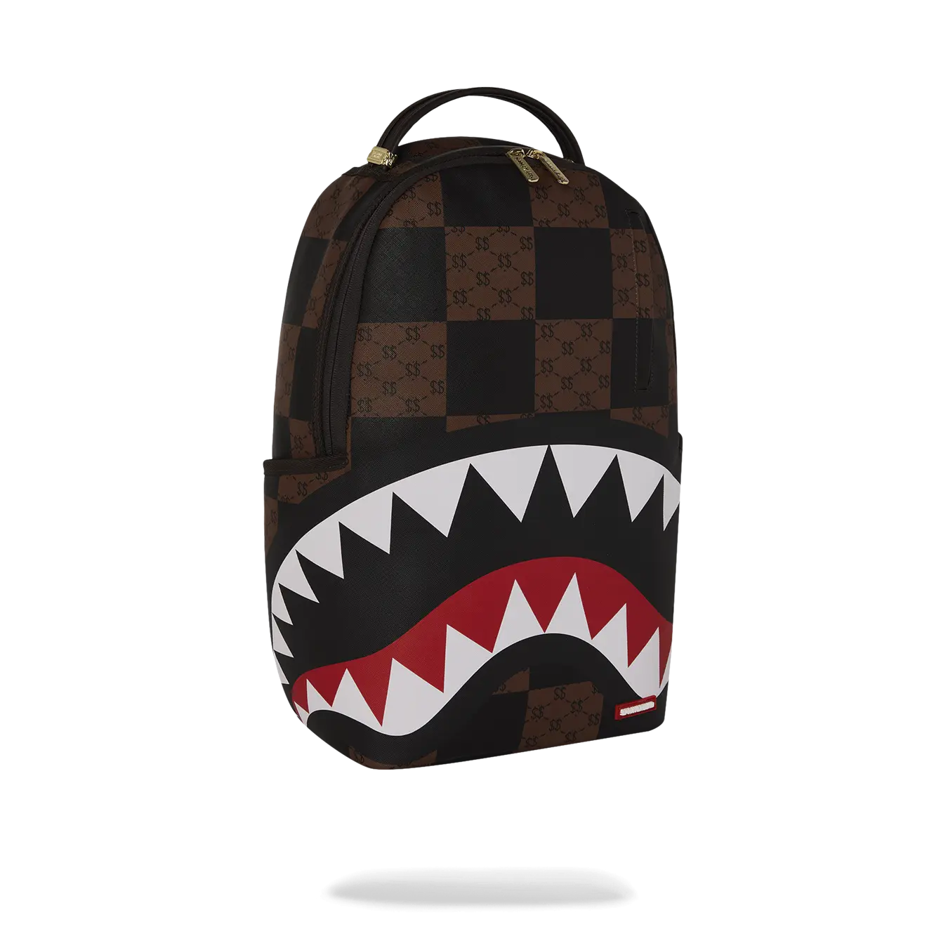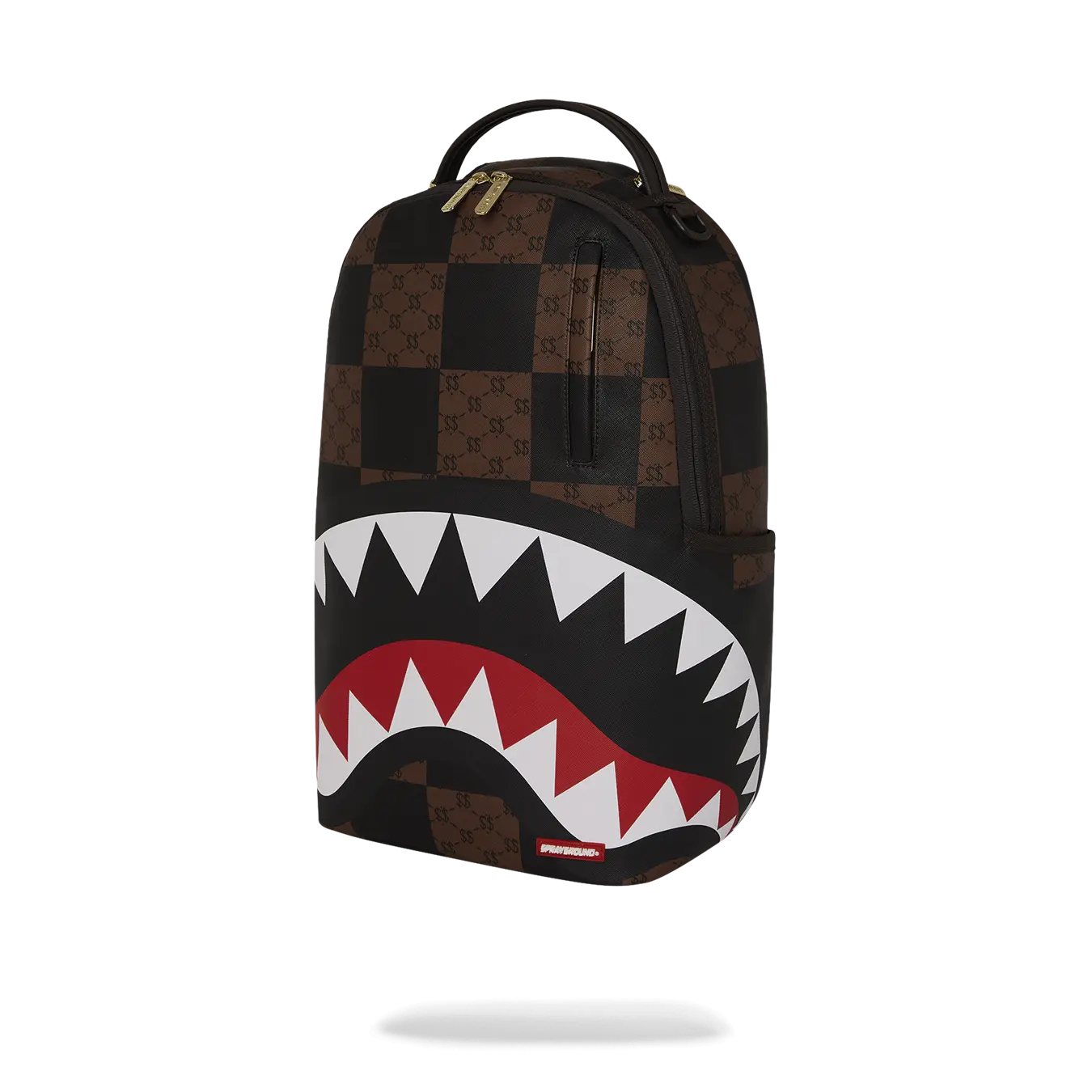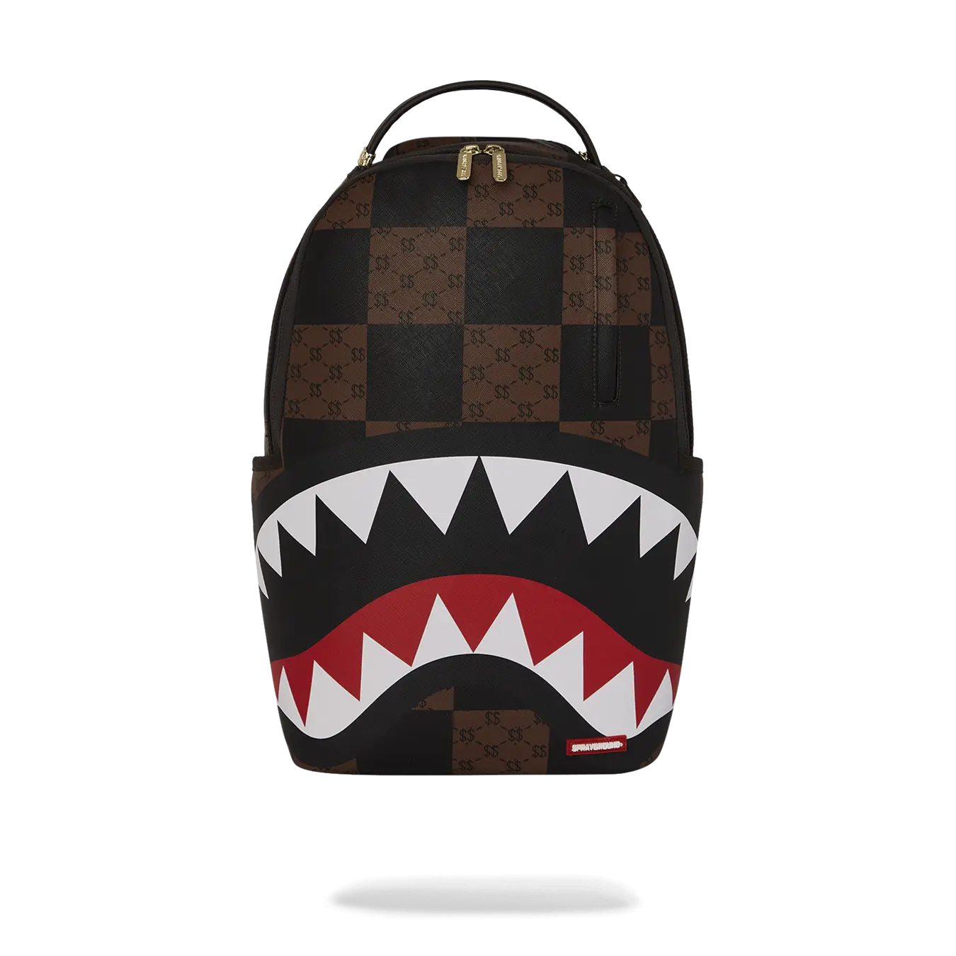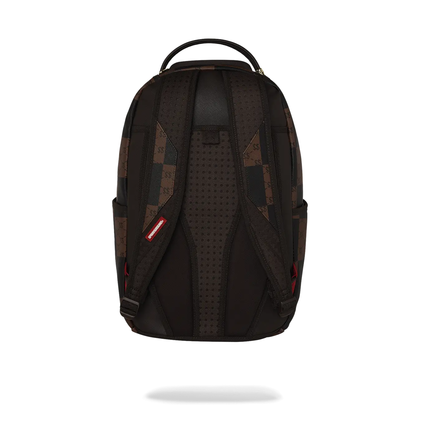 Dimensions: 18" x 6" x 11.5" • Front zipper pocket • Side pockets • Zippered Stash pocket • Separate velour sunglass compartment • Ergonomic mesh back padding • Adjustable Straps for custom sizing • Gold zippers with metal hardware • Metal "Sprayground Authentic" badge • Slide through back sleeve connects to carry-on luggage to free your hands
