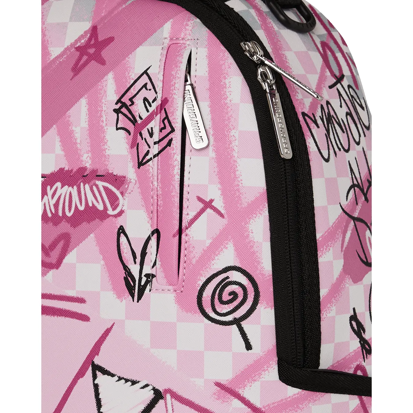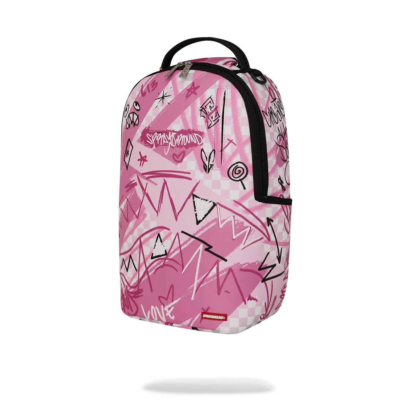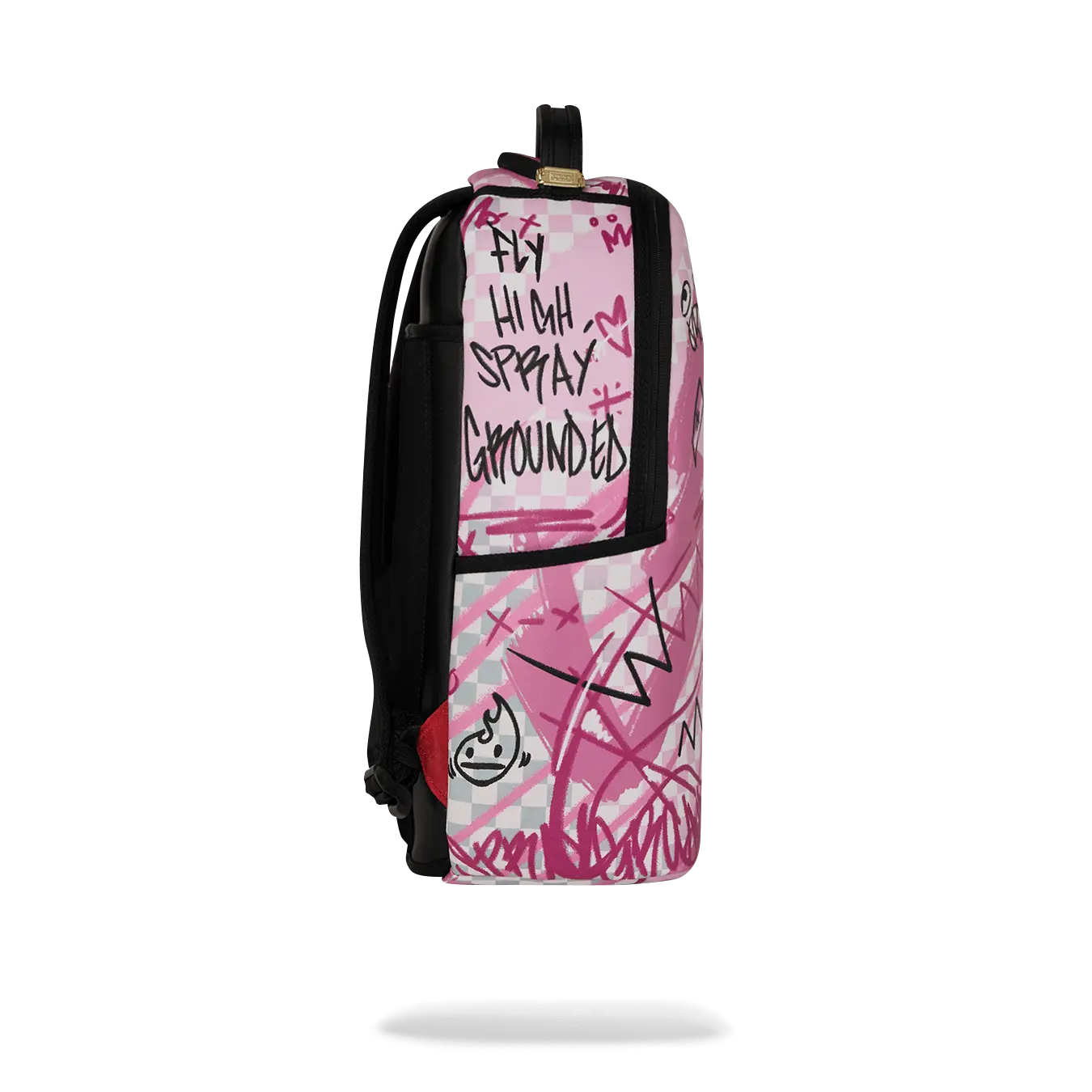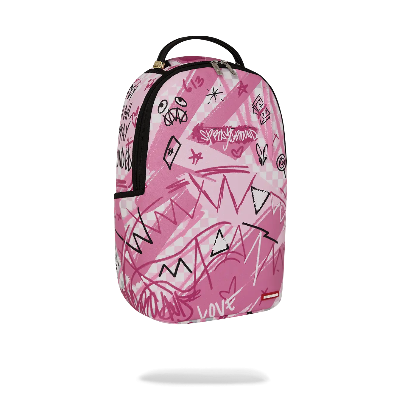 Dimensions: 18" x 6" x 11.5" • Front zipper pocket • Side pockets • Zippered Stash pocket • Separate velour sunglass compartment • Ergonomic mesh back padding • Adjustable Straps for custom sizing • Gold zippers with metal hardware • Metal "Sprayground Authentic" badge • Slide through back sleeve connects to carry-on luggage to free your hands