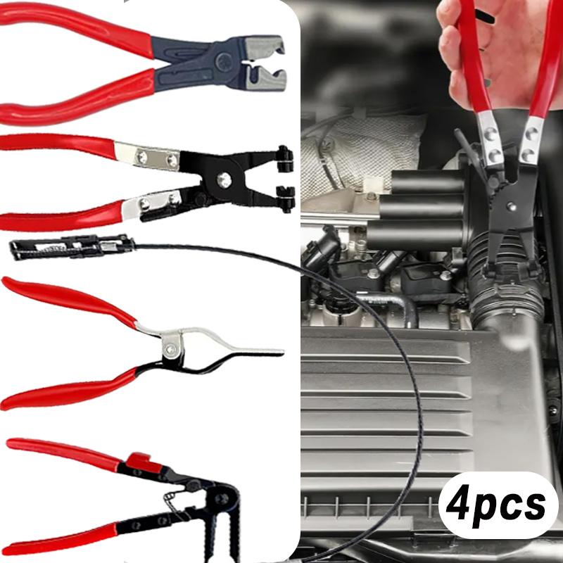 ·4-Piece Set: Includes swivel flat band hose clamp pliers, long-reach cabled hose clamp pliers, vice grip, and hose remover pliers.