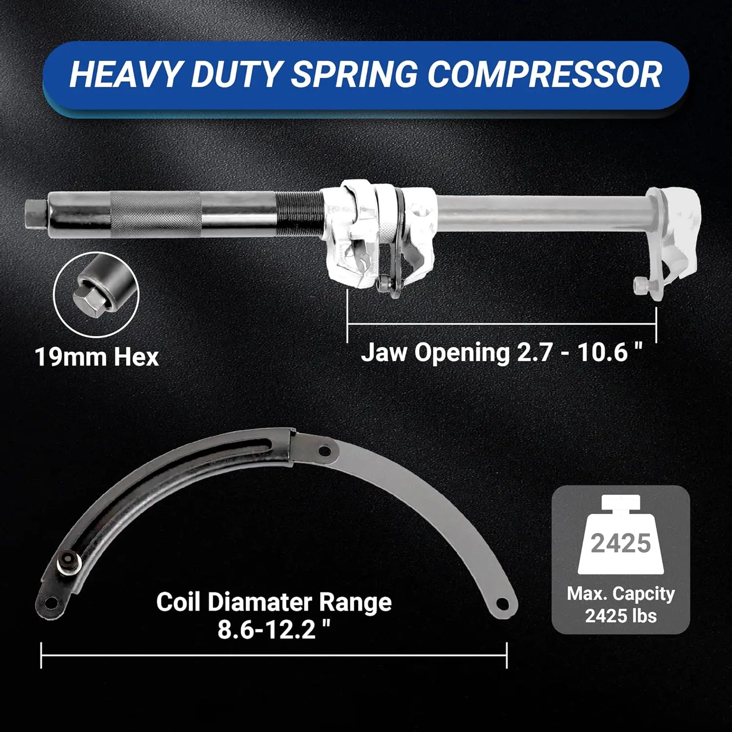 【Heavy-duty Tool】Heavy-duty spring compressor tool kit with a 2,425 LB capacity for safe and controlled spring compression. for automotive repair and maintenance, it ensures and balanced power for removing or installing springs, shock absorbers, struts, and spacers.