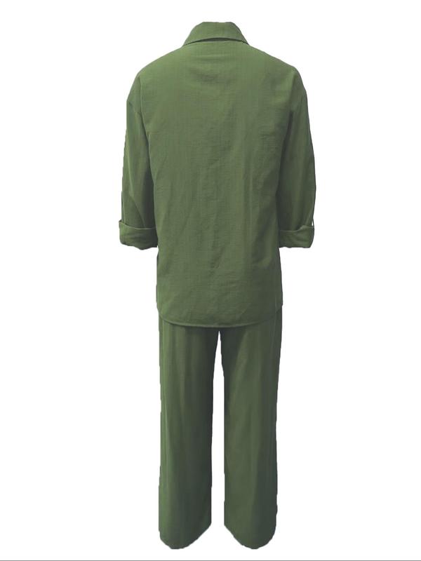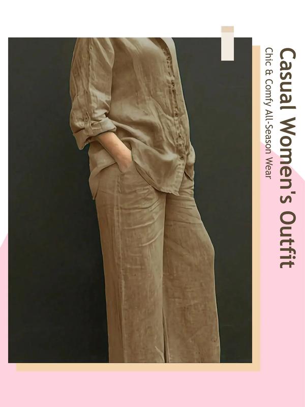5. Spring Summer Fall Polo Neck Casual Cardigan Set, Slimming Pure Color Elegant Shirt Top, Vacation Commute Comfort Soft Fabric Pants Two-Piece Suit