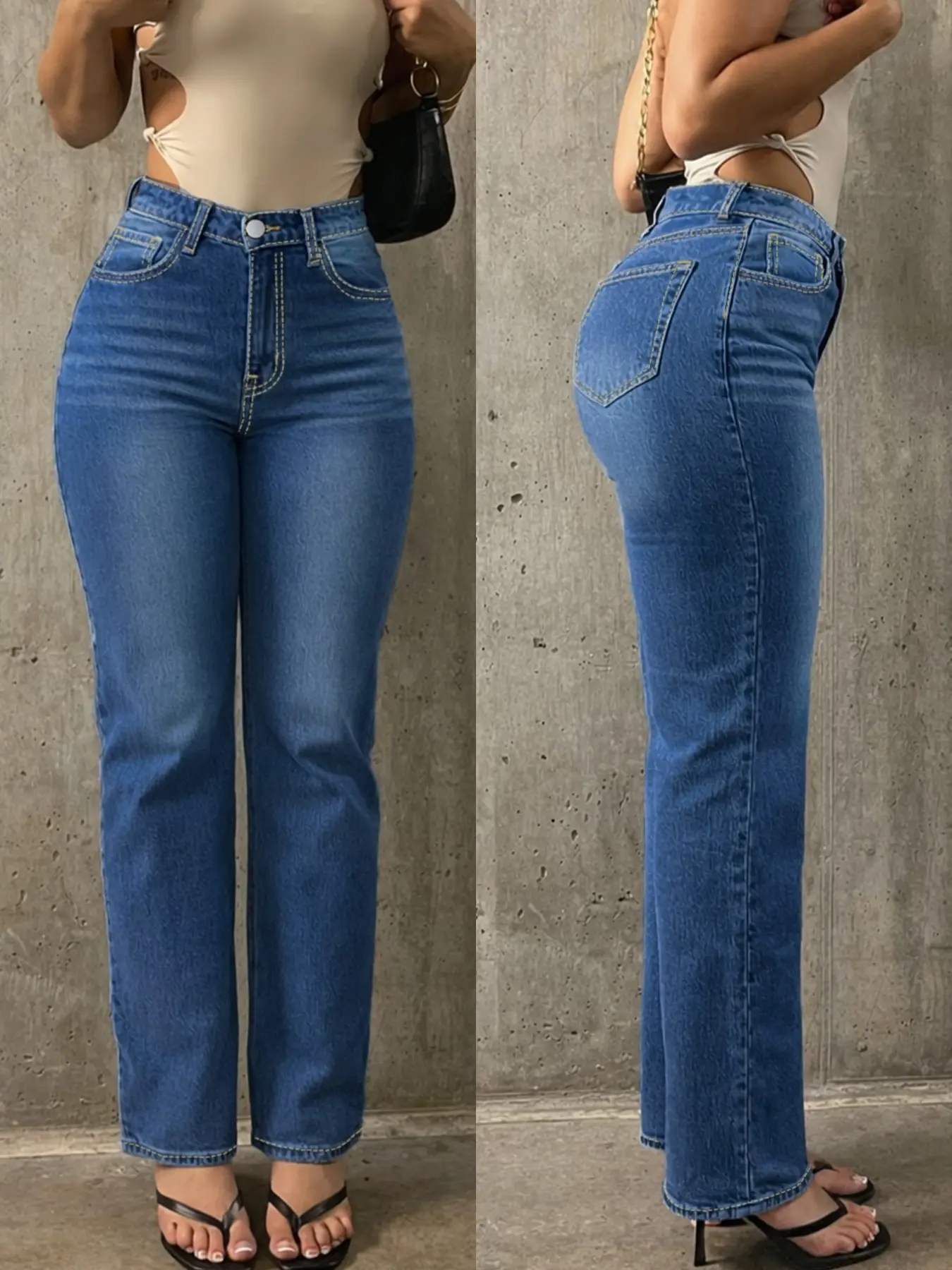 Spring Summer Fashion Casual Fitted High Waisted Stretch High Waist Rise Light Blue Denim Straight Leg Pants for Women, Comfortable Elastic Waist Jeans for Daily Wear #widelegdenim #highwaistpants #widelegjeanswomen #judybluebootcutjeans #trendyjeans #highwaistlegging #highwaistshaper #sheswaistedshapewear #pushupjeans #lowrisejean #ootd #womenjeans