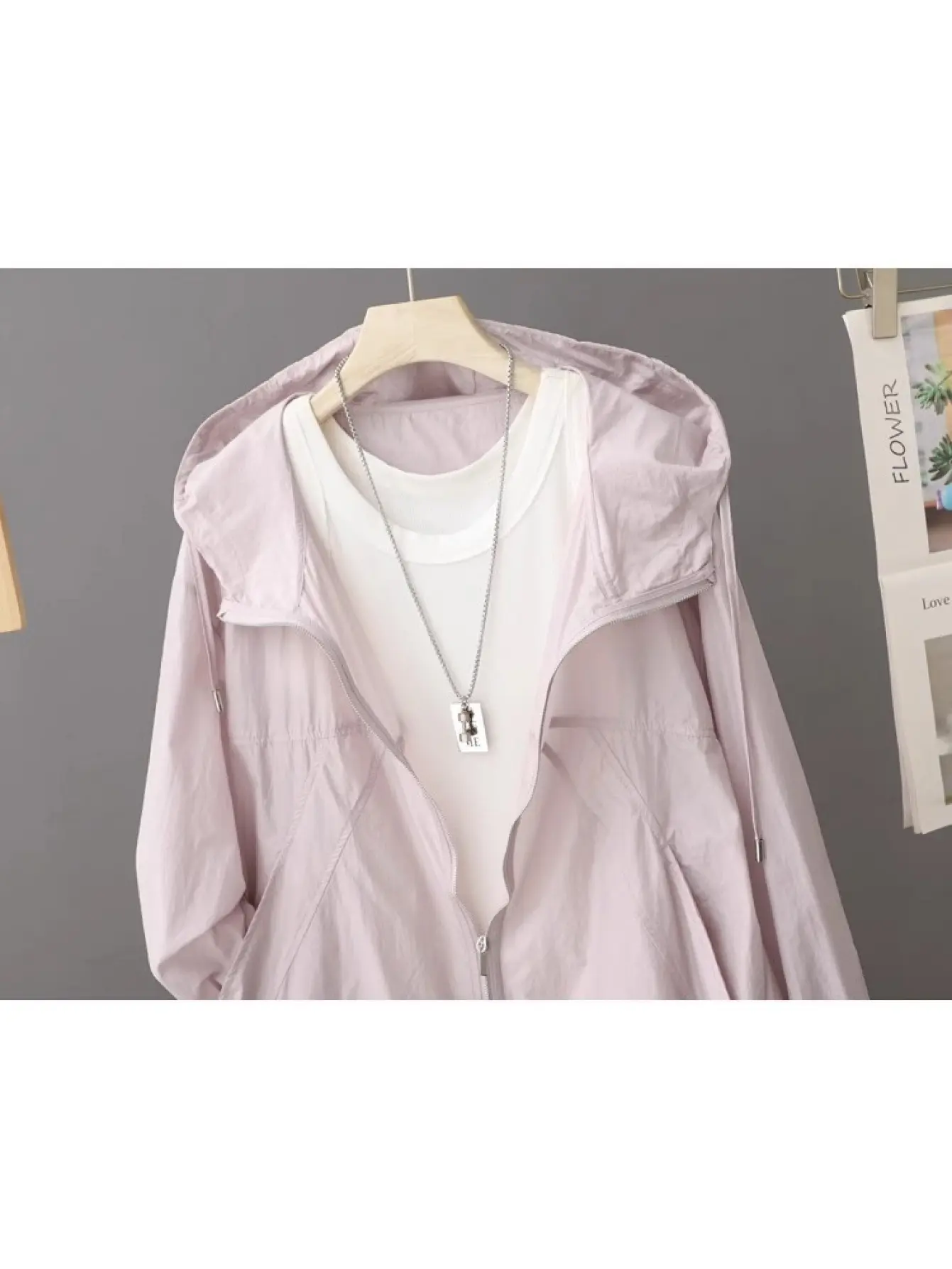 Spring and Summer Solid Color Hooded Sunscreen Jacket- Lightweight, Breathable, Loose-Fitting Open-Back Outdoor Short Sleeve Coat