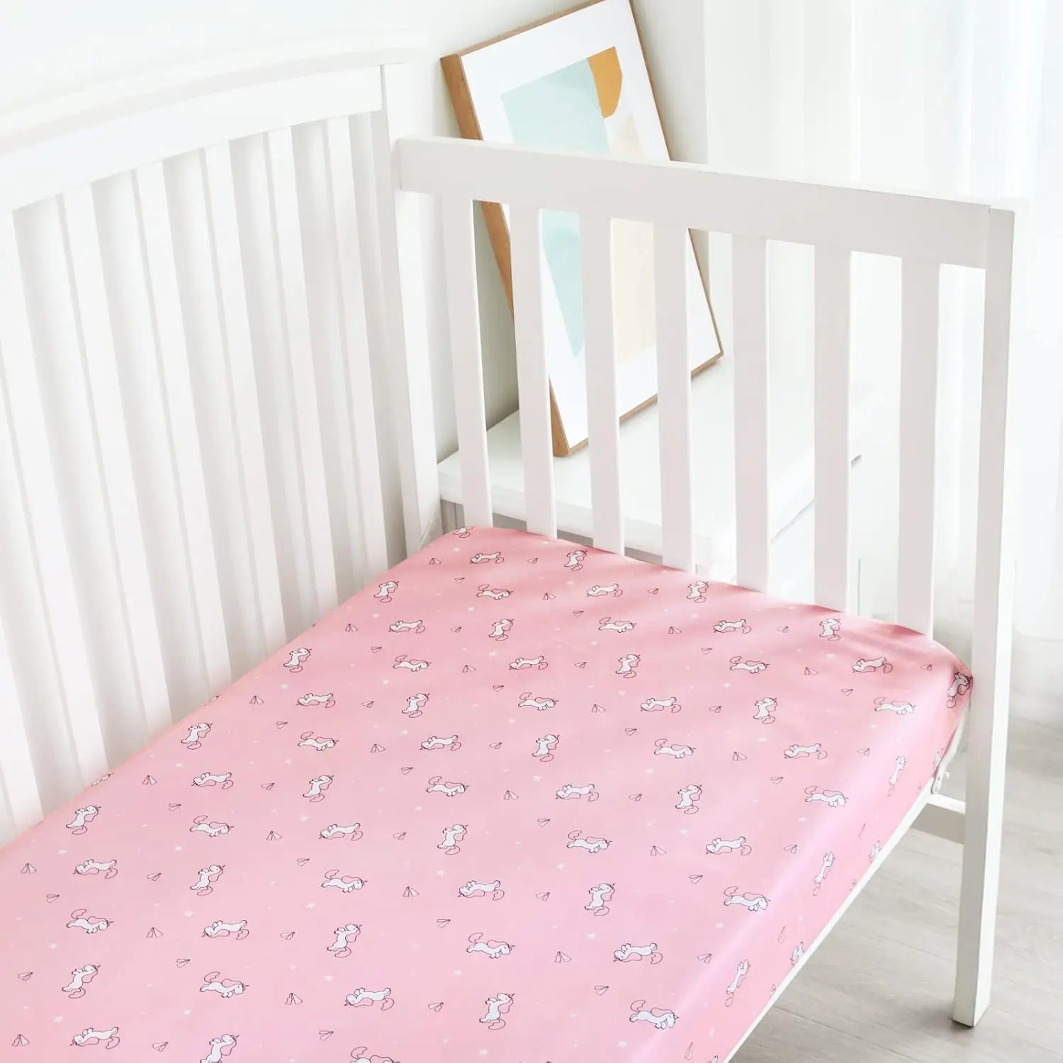 ·Breathable & Versatile: These crib sheets are soft and breathable, suitable for both boys and girls. Available in various cute prints like dinosaurs, ocean, unicorn, pink, white, gray, and aqua. True to color and size.