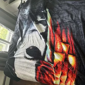 I’m huge Micheal Myers Halloween fan. I knew I had to have when I saw it. Blanket is a great weight. No to heavy and takes the chill off winter days. I have it on my lounge chair.
