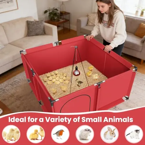 ·【Spacious & Comfortable】: With dimensions 50x50x25 inches, the brooder can accommodate up to 30 chicks, providing sufficient activity space to avoid crowding stress. Suitable for chicks, ducks and other young poultry, meeting diverse breeding needs