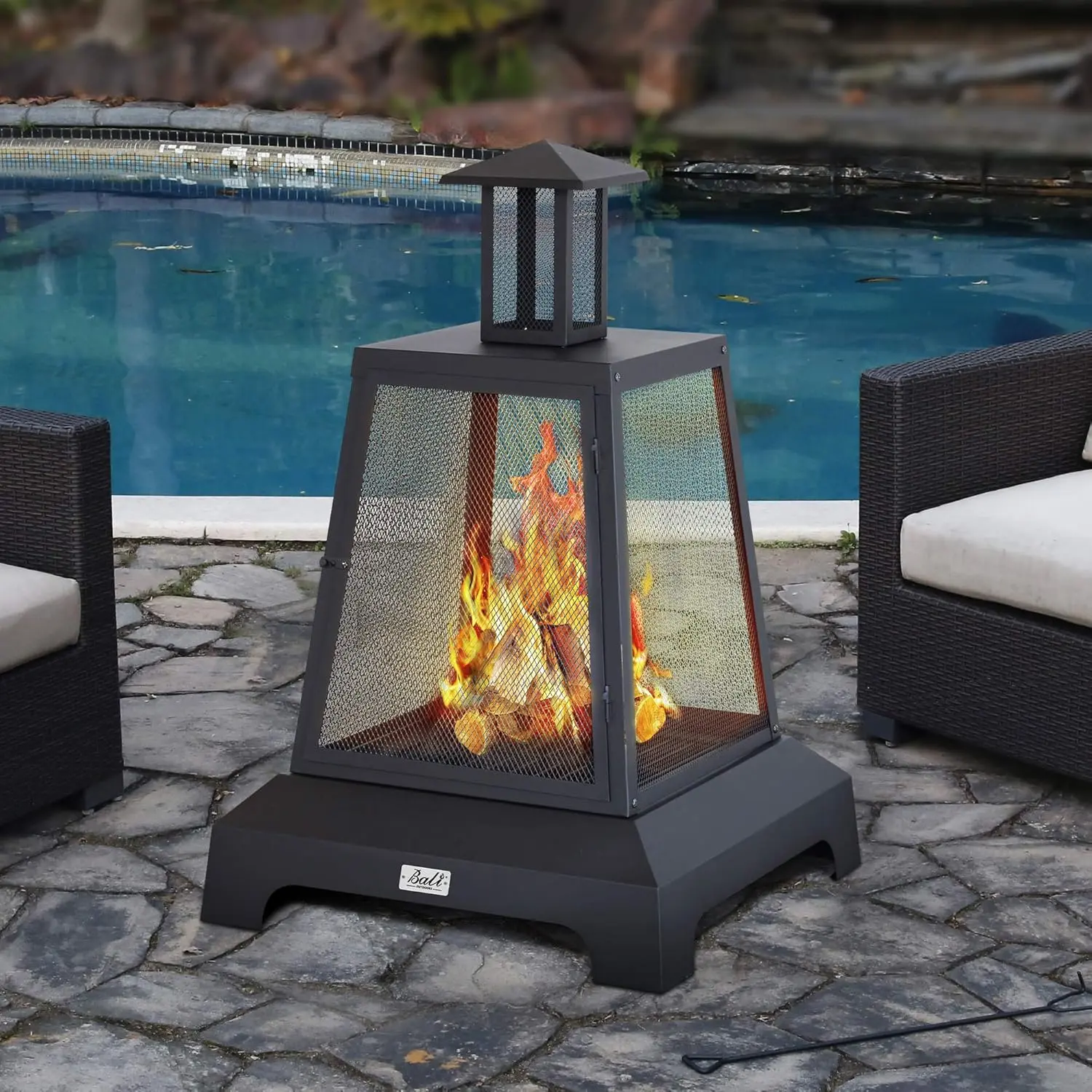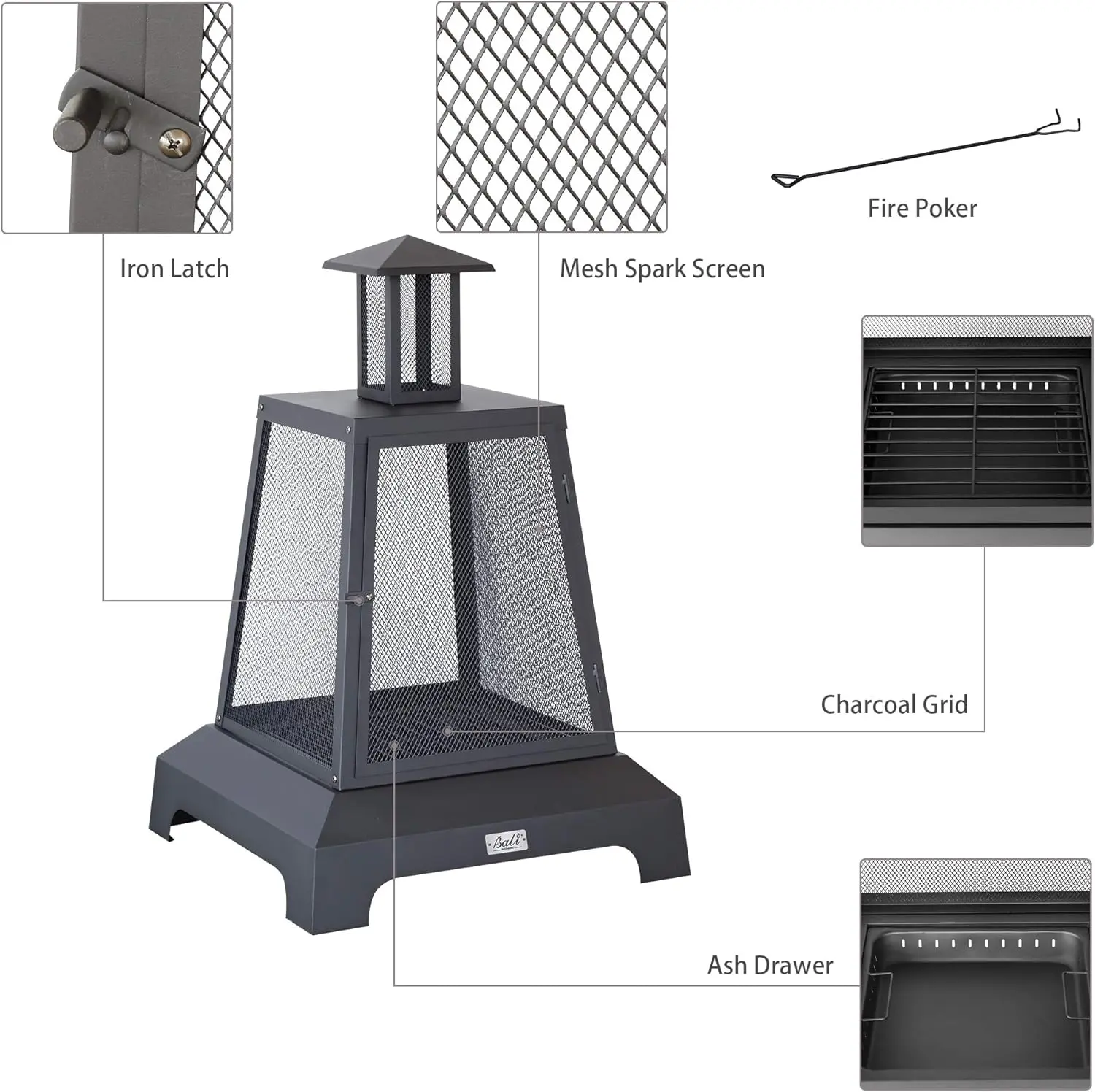 Intimate Design: Includes a 24.5” fire poker to shift coals and logs, allowing better airflow. The 15.6" fire bowl has a bottom ash tray for easy cleaning, preventing ash from falling on the ground.