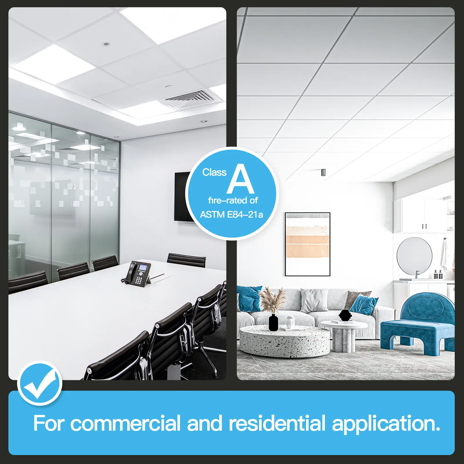 ·DIY-Friendly – Easily cut with a utility knife or table saw and fits standard 15/16" T-grid ceiling systems.