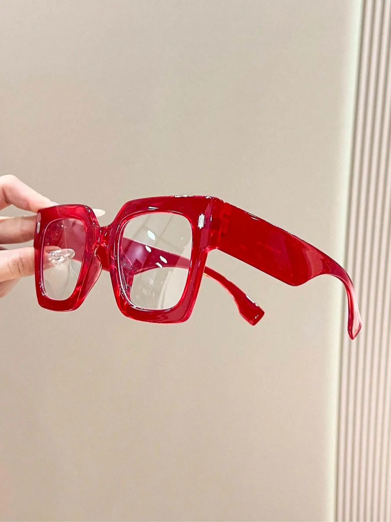 I love the square frame eyeglasses. Elevates your outfit with a pop of color.