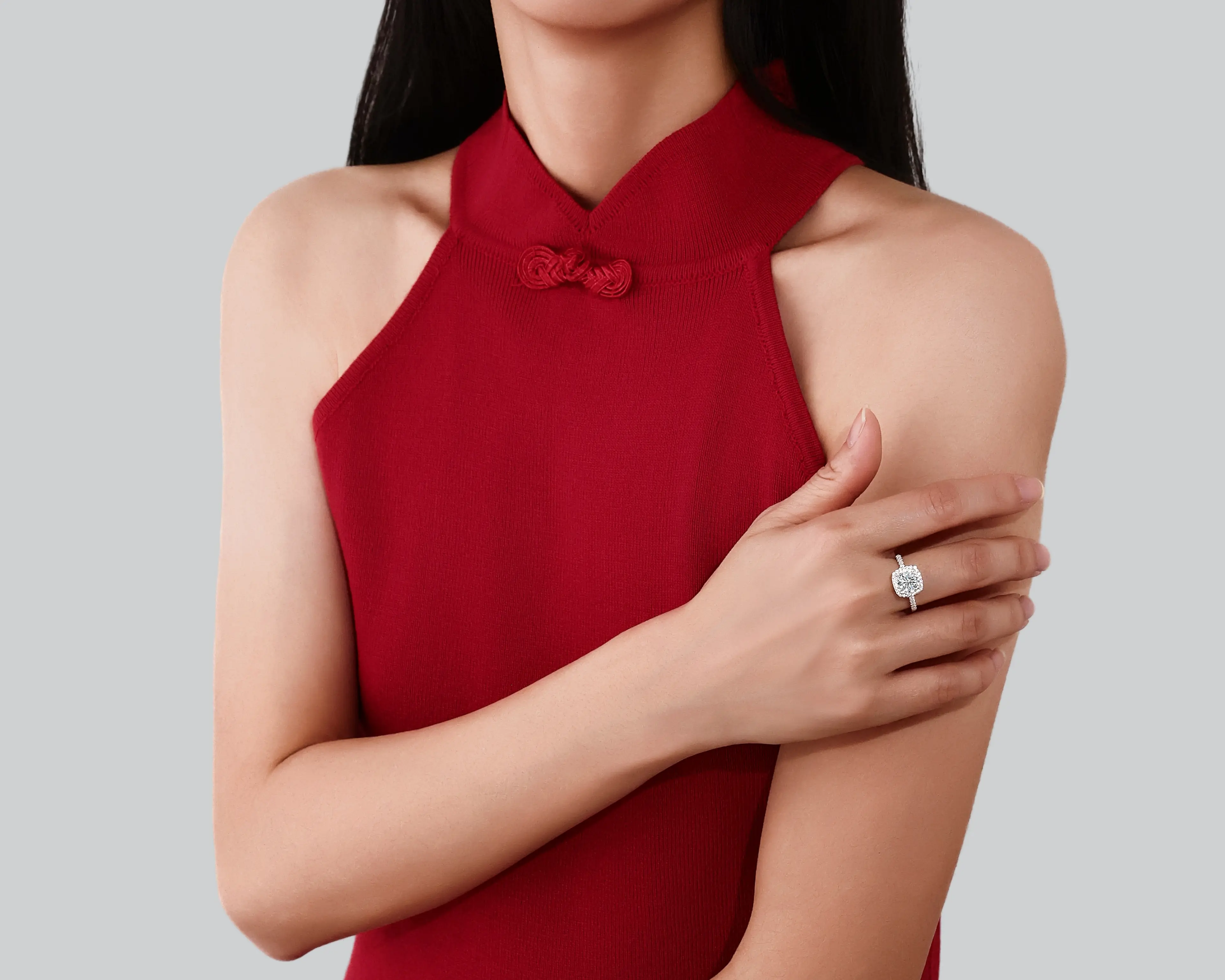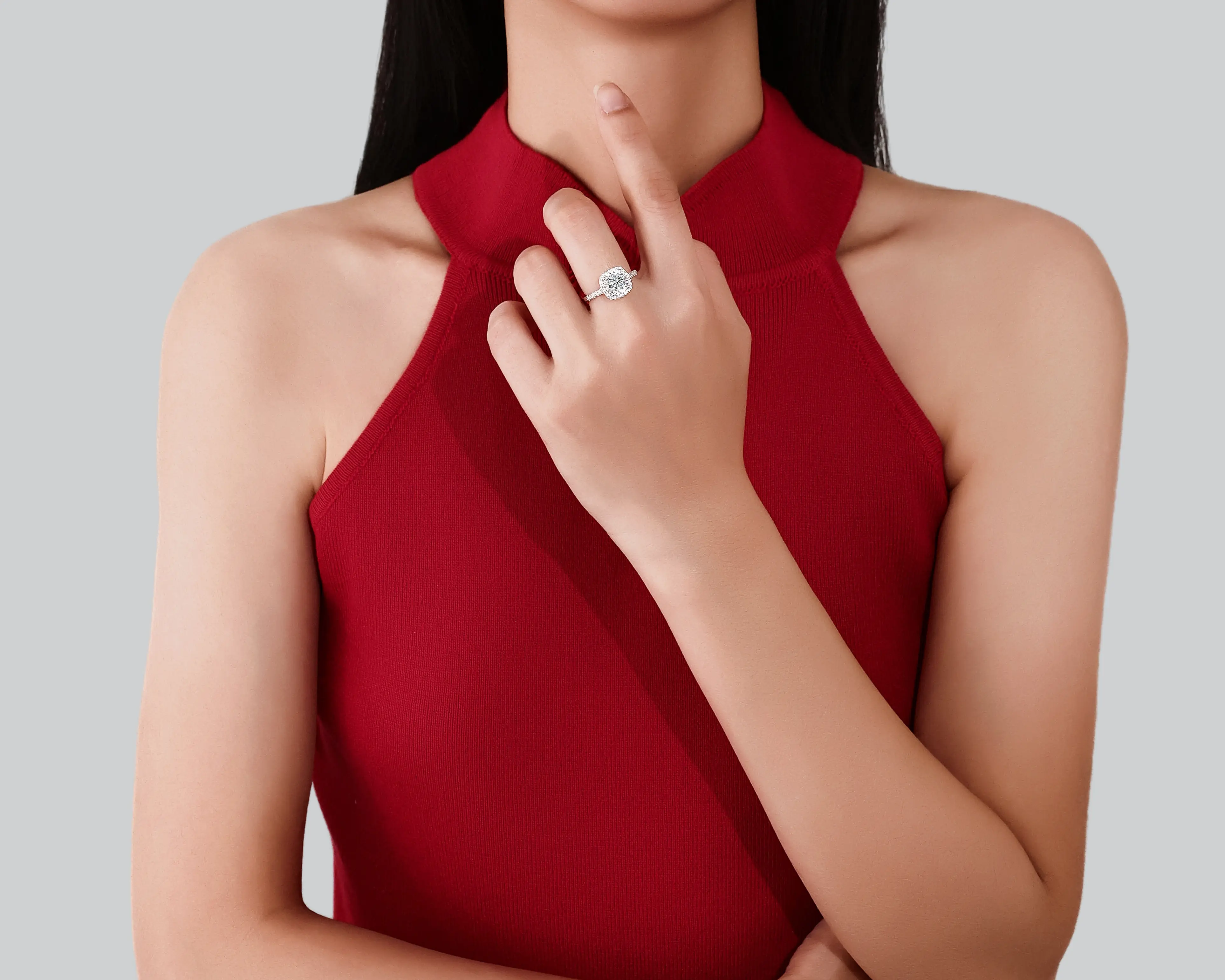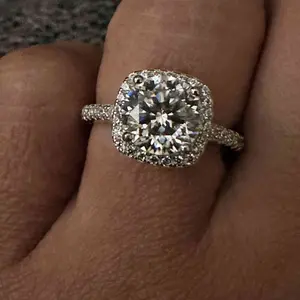 I absolutely love my 2 carat square halo moissanite! It’s so dainty, feminine and shines beautifully. I wear a size 5 and the center stone isn’t too flashy for my simple style but can easily accent any outfit perfectly. Looks great on us melanated gals too! Pics just don’t do it justice.