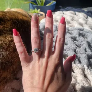 This is so stunning! My friend was shocked how sparkly it was & that was her first impression! I think it honestly delivers & didn’t disappoint! The size fits well 🎈It’s such a beautiful ring. Thank you!!