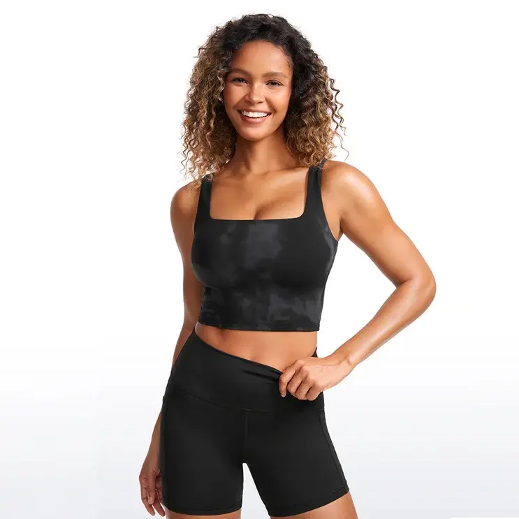 CRZ YOGA Butterluxe Womens Square Neck Longline Sports Bra - Workout Crop Tank Tops Padded with Built in Shelf Yoga Bra