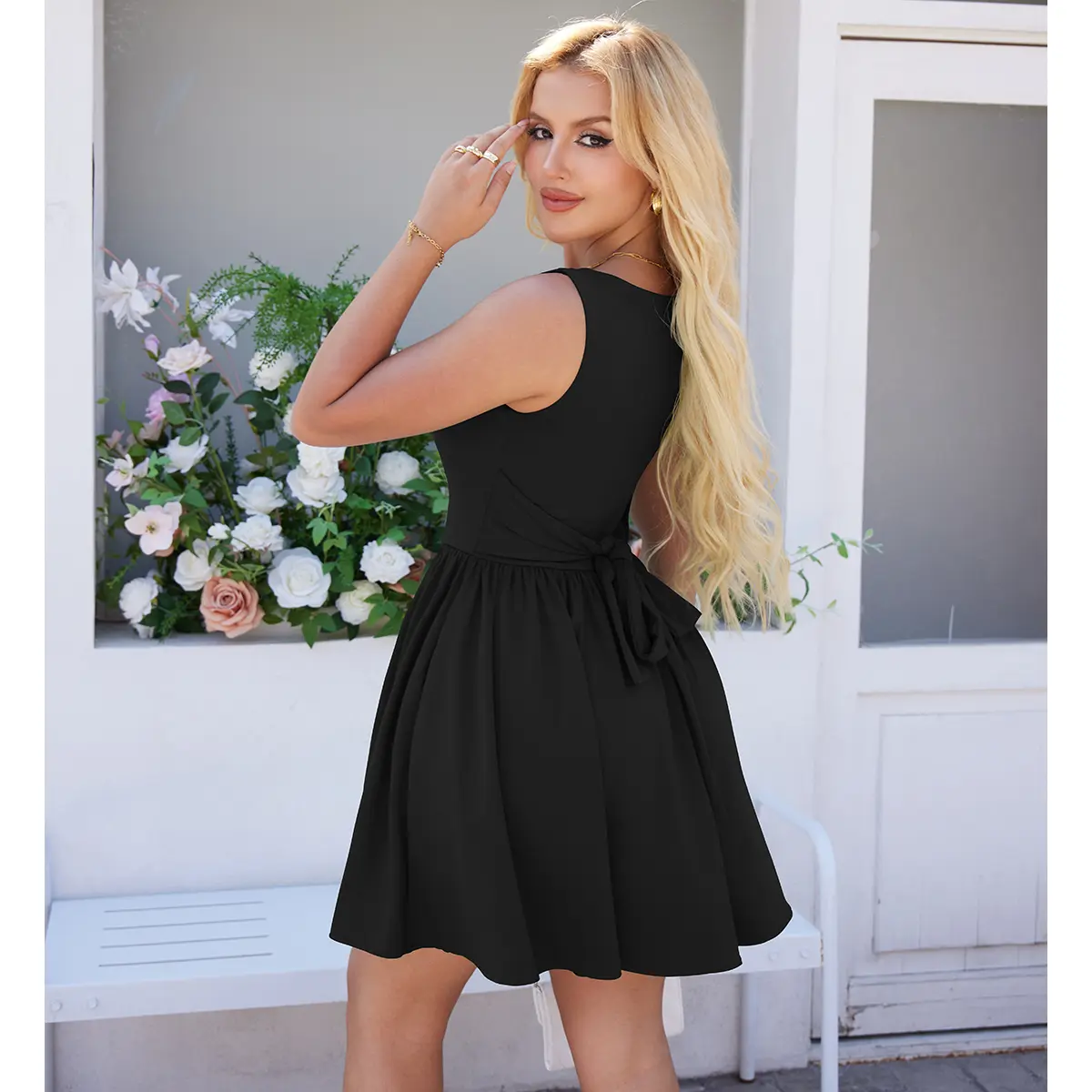 ·Every detail has been meticulously designed, brimming with magic. The dress is crafted from soft, stretchy knitted fabric that hugs the body, accentuating the figure's curves. The waist of the dress features natural folds that gracefully cascade into an A-line skirt, adding a touch of playfulness and liveliness.