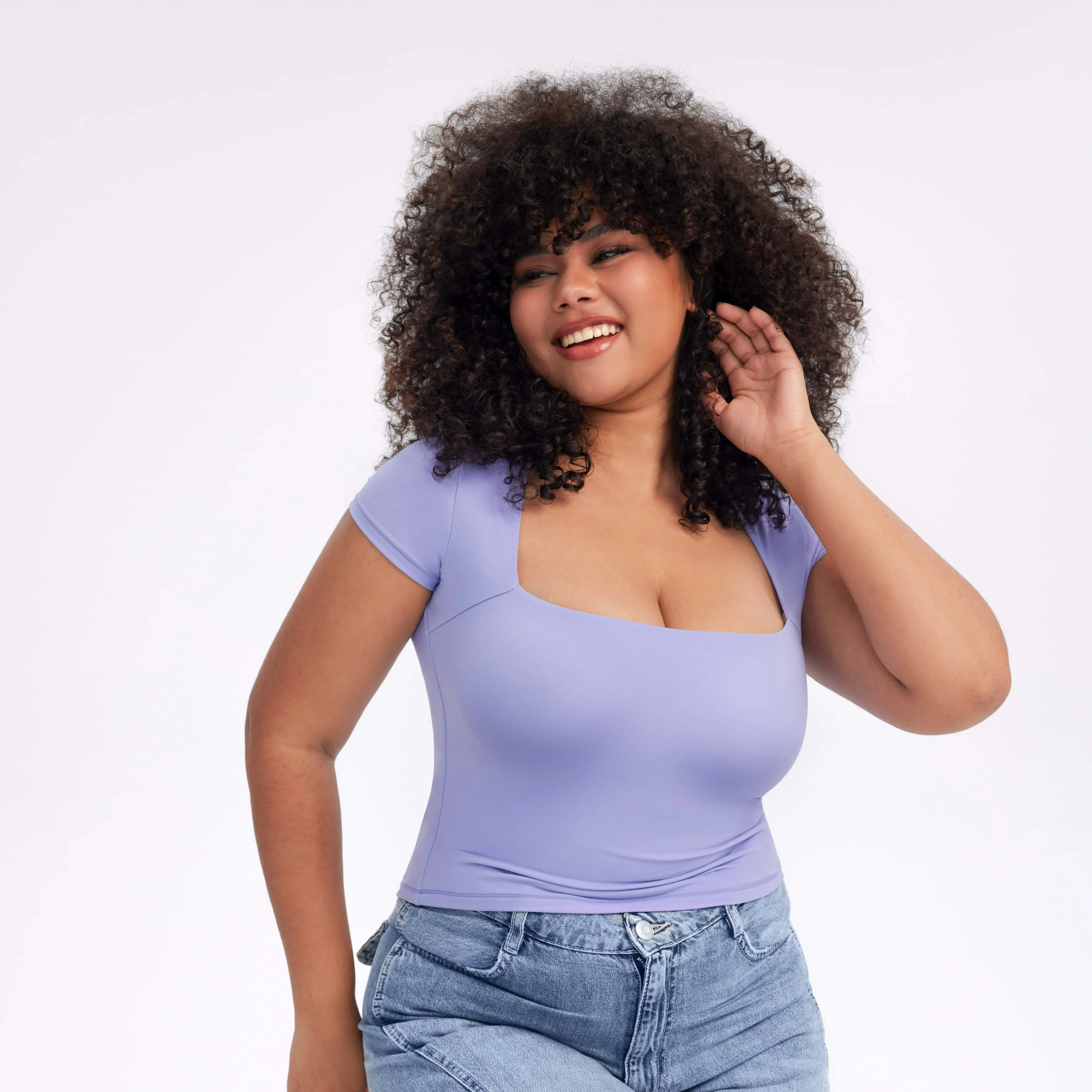 Even though I didn’t receive the item, I’m going to give it five star because I ordered eight shirts and I only received one but the material is amazing. However, TikTok did reimburse me so I will be ordering more. I like my shirts tight for reference I’m a 36 DD and I ordered a medium love it