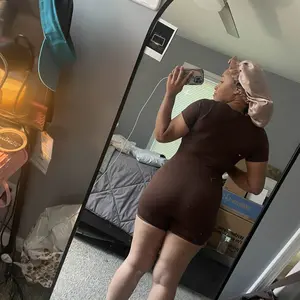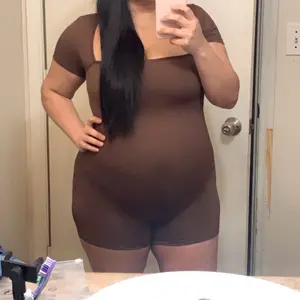 This jumpsuit is very comfortable! I love the way it helps define my shape and snatches me a bit. The brown color is really vibrant. Probably need to wear a strapless bra with it to not see bra straps.