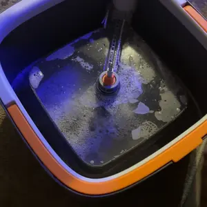 I am very impressed with this spin mop. It is an excellent way to ensure that clean water is always available without the need to mix it with dirty water.