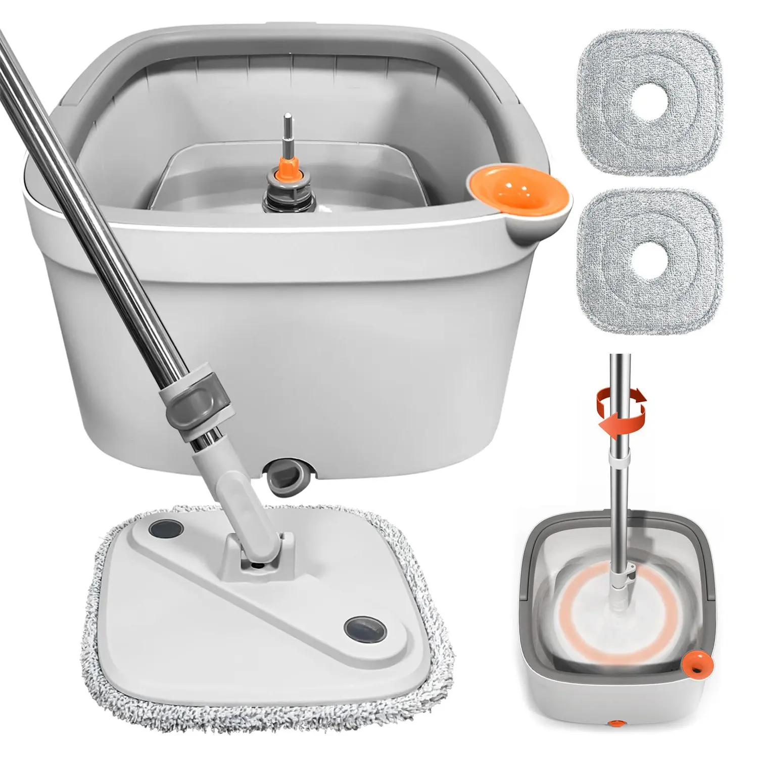Gray Spin Mop with 2 mop pads