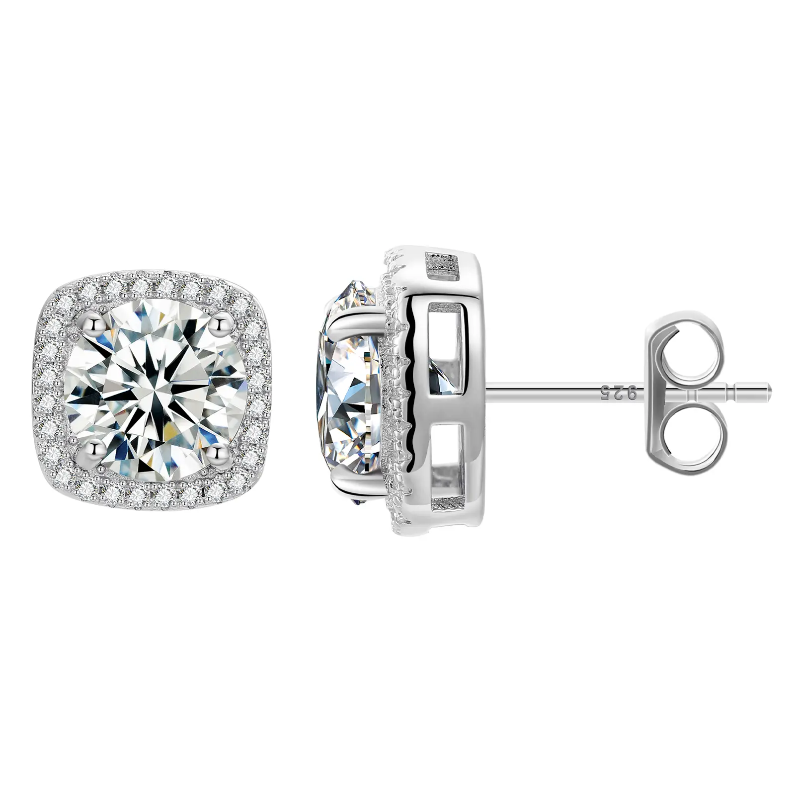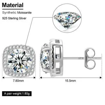【#E203】UCCIYO D VVS Synthetic Moissanite Square Stud Earrings 925 Sterling Silver Women Wedding Jewelry Elegant Jewelry Birthday Gift Anniversary Evening Party