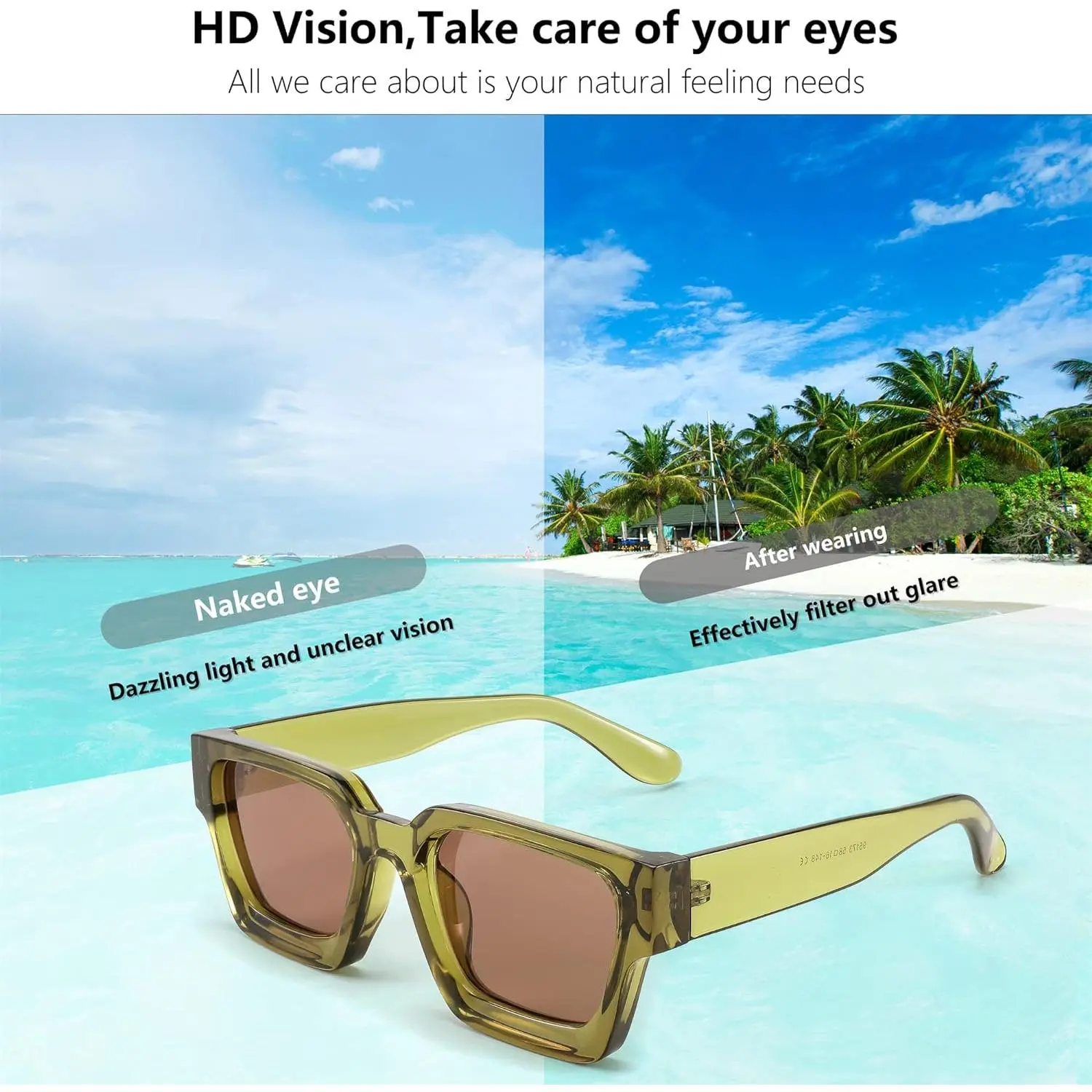 ·Retro Design - The thick square frame and the classic design show your uniqueness and fashion.Nose pads in frame suit any people, reducing the pressure on the nose. FEISEDY sunglasses bring you high quality fashion experience in sunshine and nature.