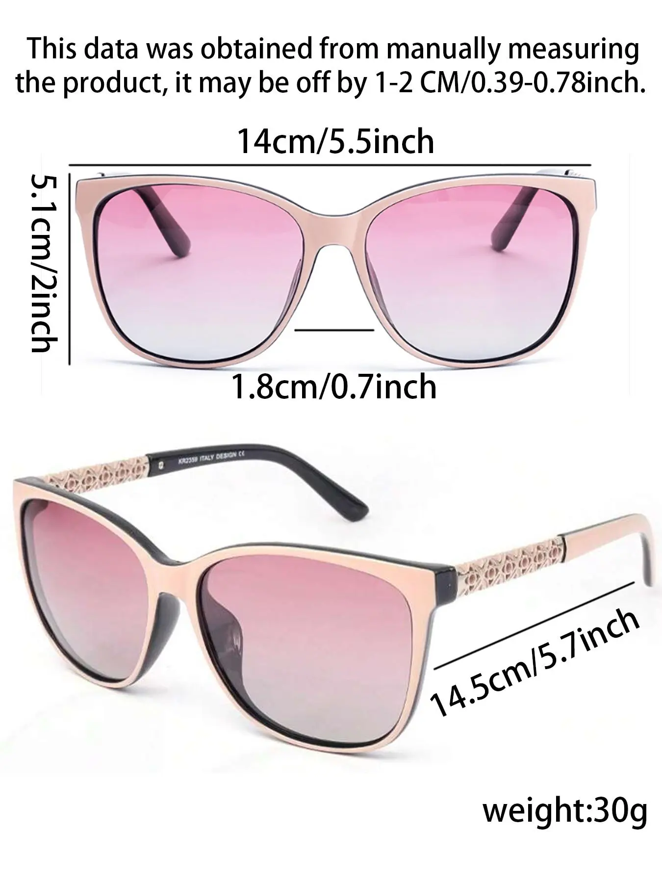 Look nothing like the picture. Says they are pink but frames are tan color and lens are a very faint pink ombre.