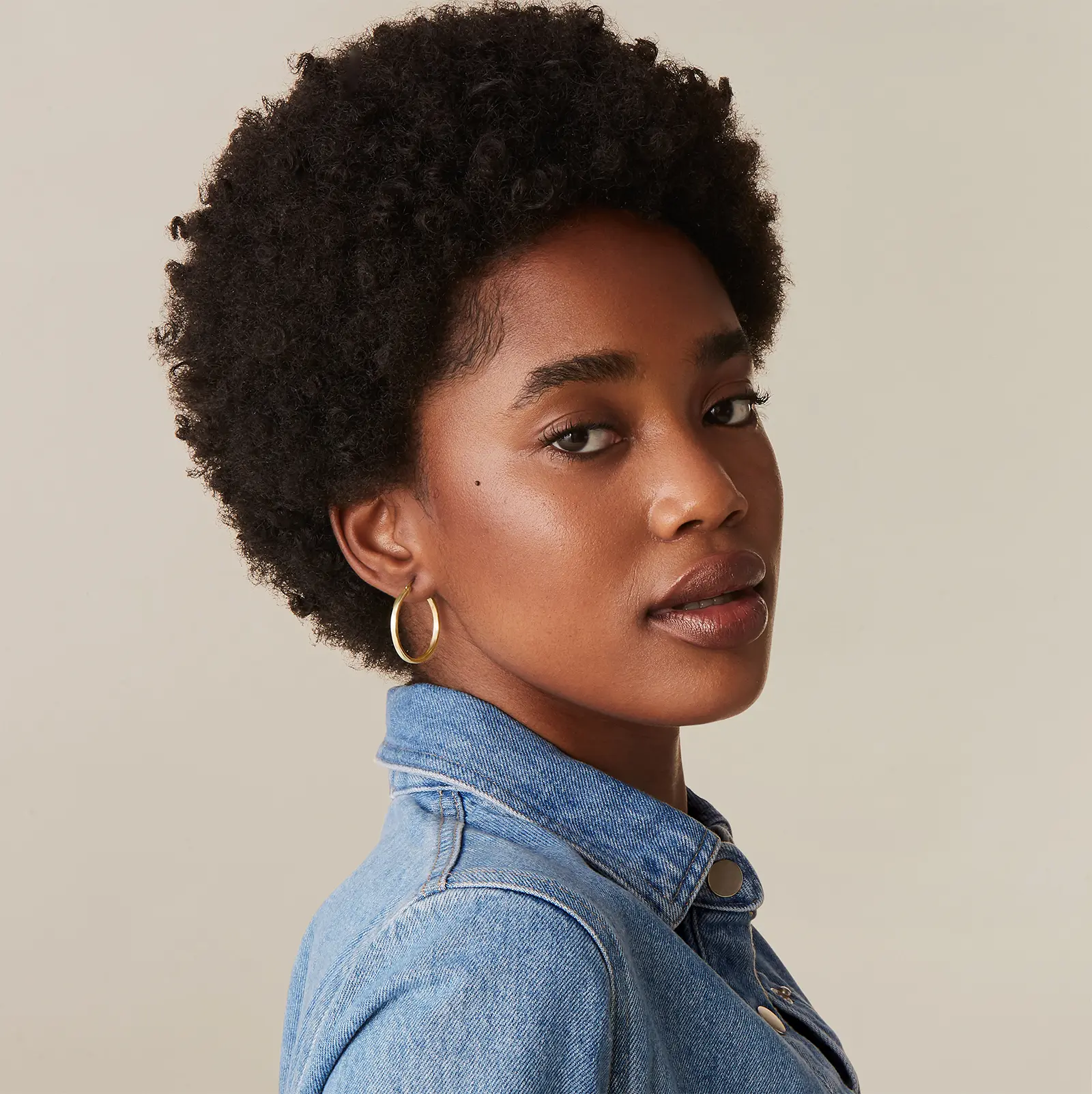 This is my second pair they look so real. Not too yellow. I love a great hoop. I also ordered the larger one, but these are my favorite. Mom loved them so much. I had to get her a pair.