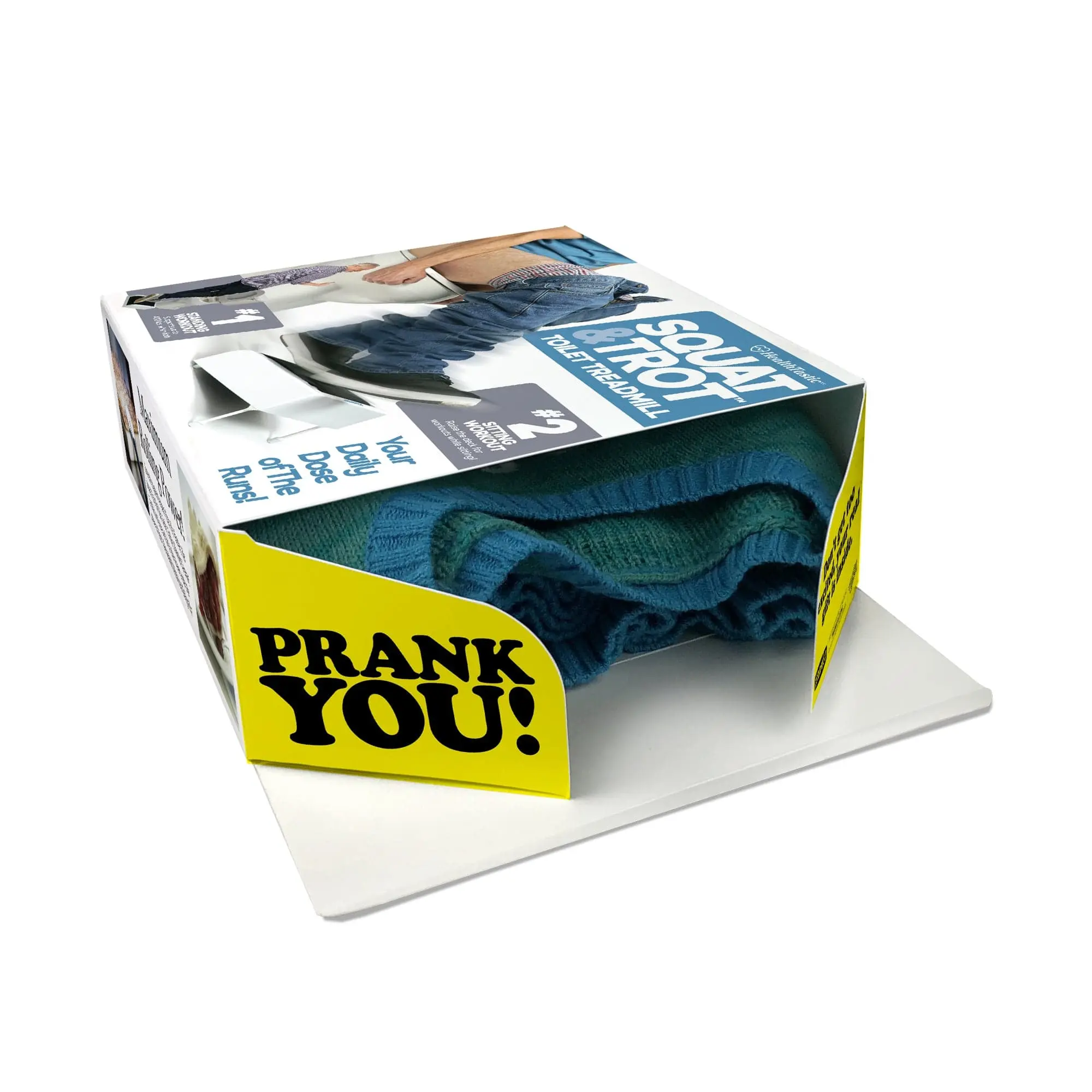 Kill two birds with one bowel movement with the innovative new Squat & Trot toilet treadmill. The product may be fake, but the laughs will be real when the prank recipient of your choosing unwraps it, only to find your real present nestled inside. It's the perfect way to "unload" your gift!